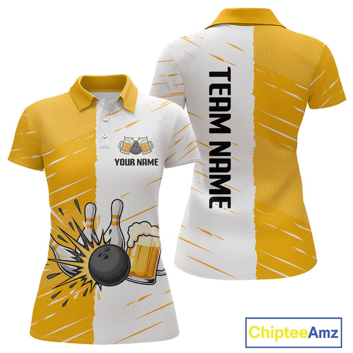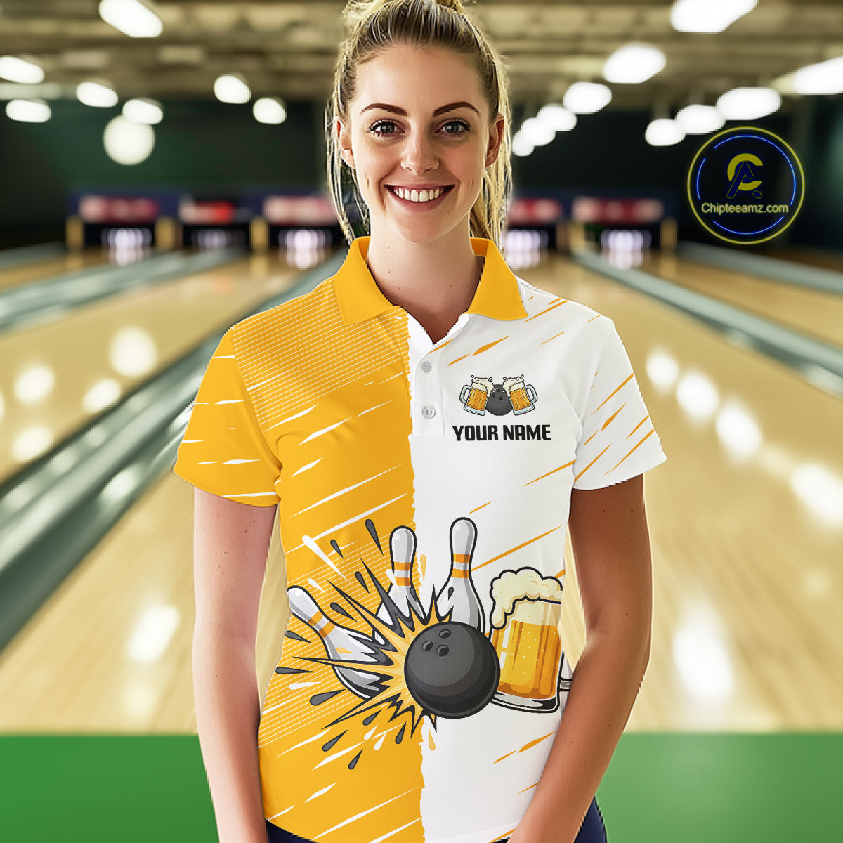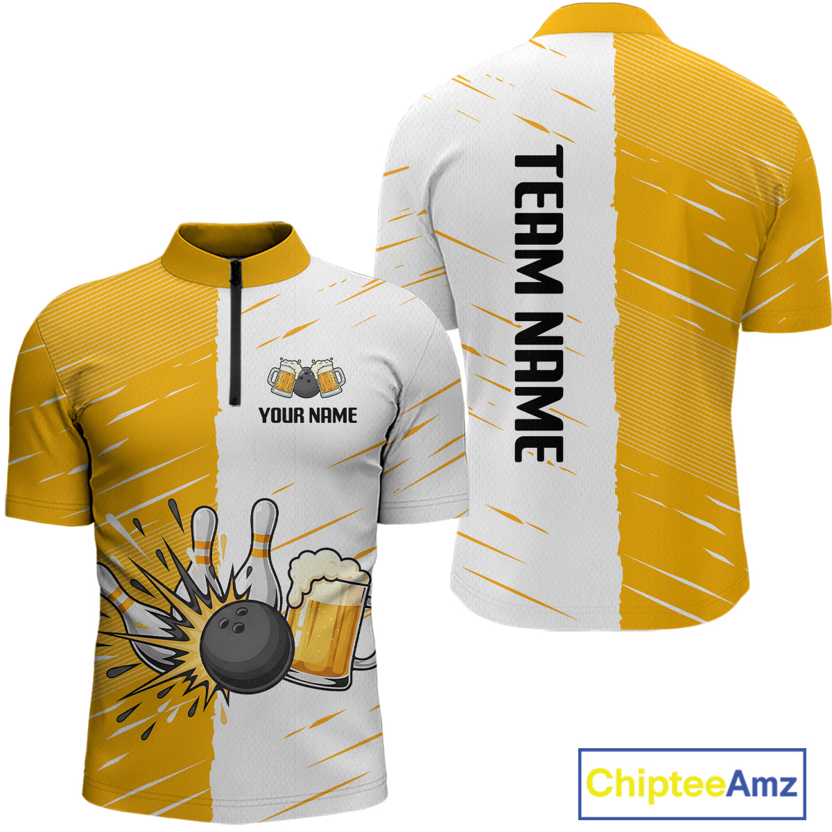 Beer Bowling Shirts Yellow&White Beer Bowling Jersey for Team Women Men Bowl League MBL259