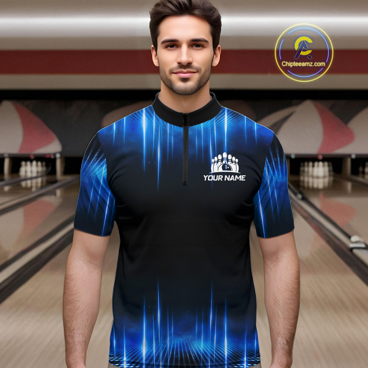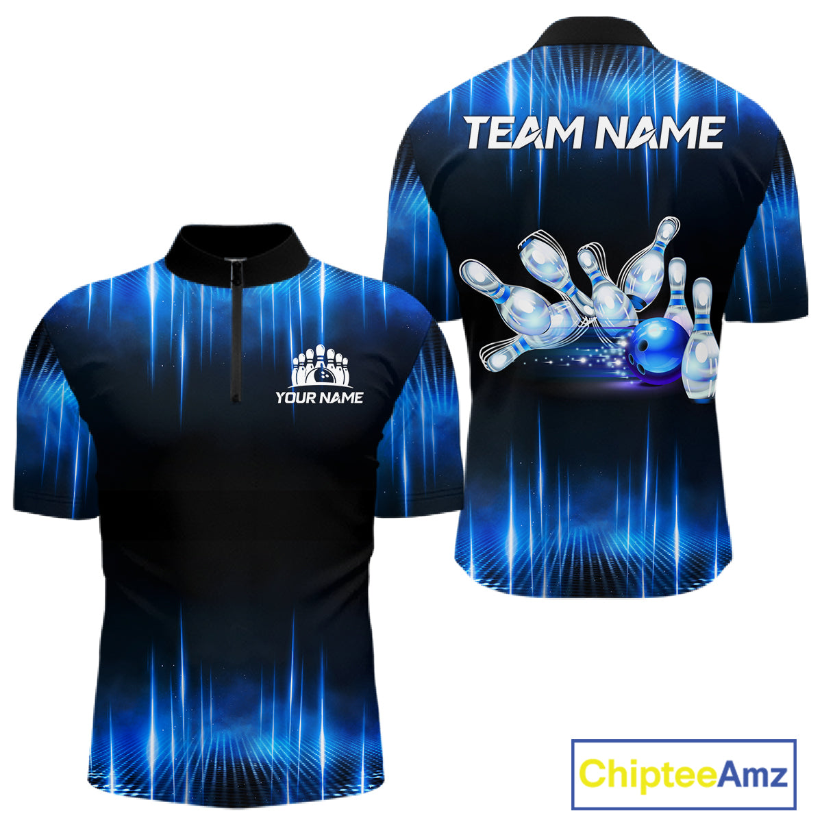 Black and Blue Bowling polo, Quarter zip Shirts for Men Custom Bowling Team jerseys, Gift For Bowler NQS11299