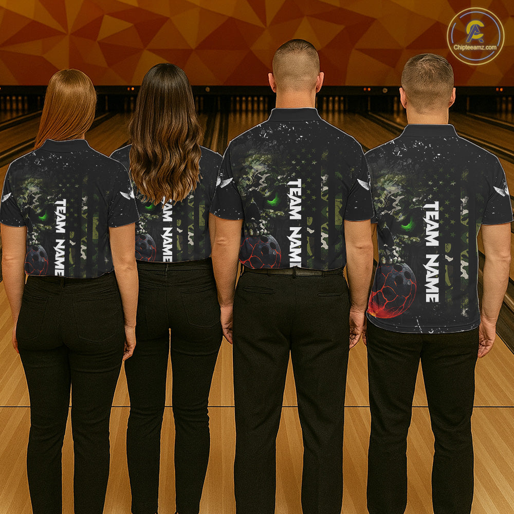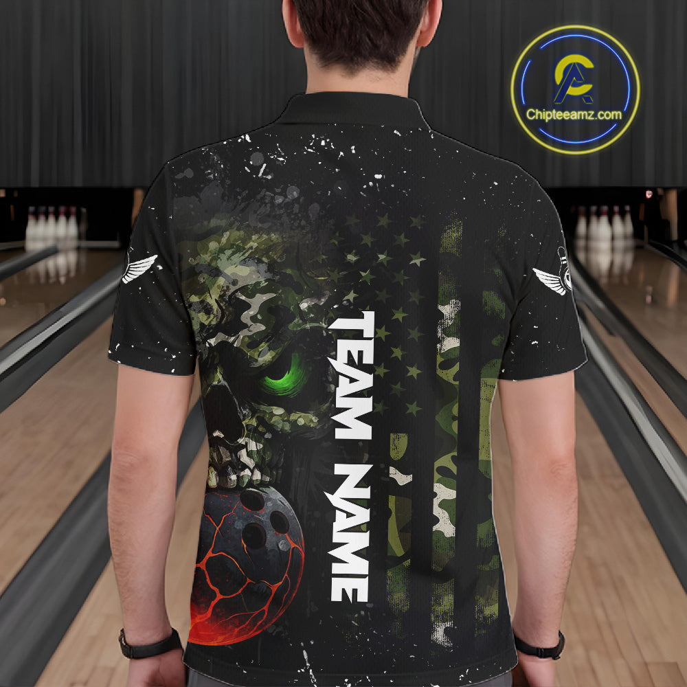 Black and Green Camo grunge American Flag Skull Bowling Shirts for Men Custom Bowling Team jerseys NQS11294