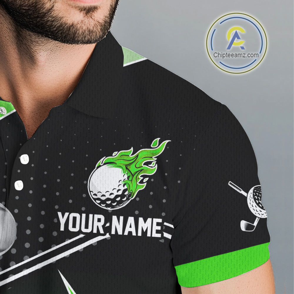 Black and Green Fire golf ball custom Men golf polo shirts, personalized golf outfits for team men NQS10123