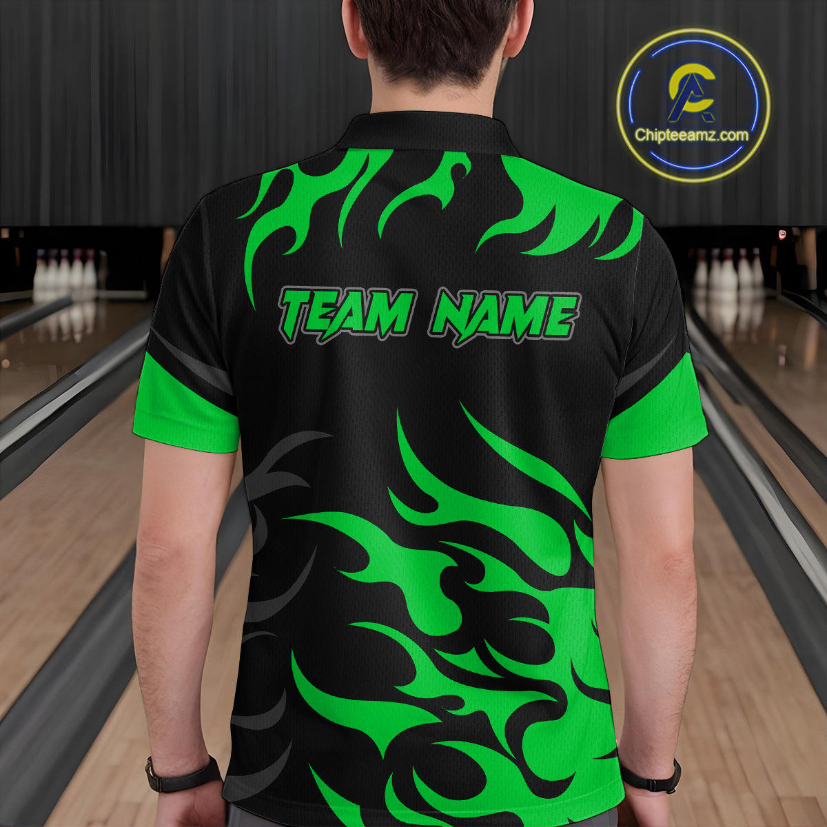 Black and Green Flame Bowling shirts for Men Custom team bowling jerseys, mens bowling apparel NQS10268