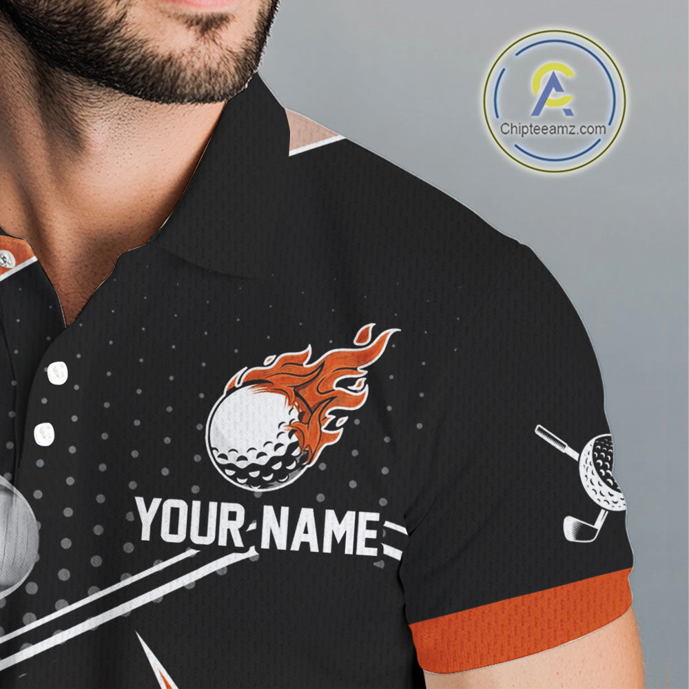 Black and Orange Fire golf ball custom Men golf polo shirts, personalized golf outfits for team men NQS10124
