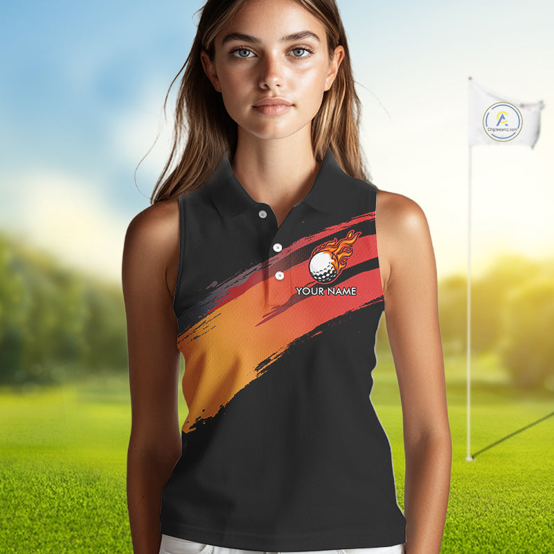 Black and Orange gradient flame golf ball Women sleeveless polo shirt custom ladies golf clothes NQS10168