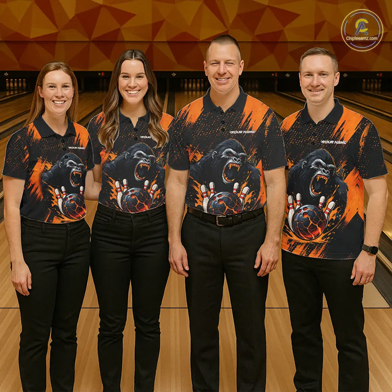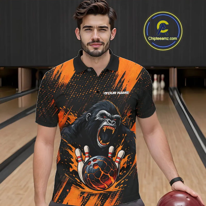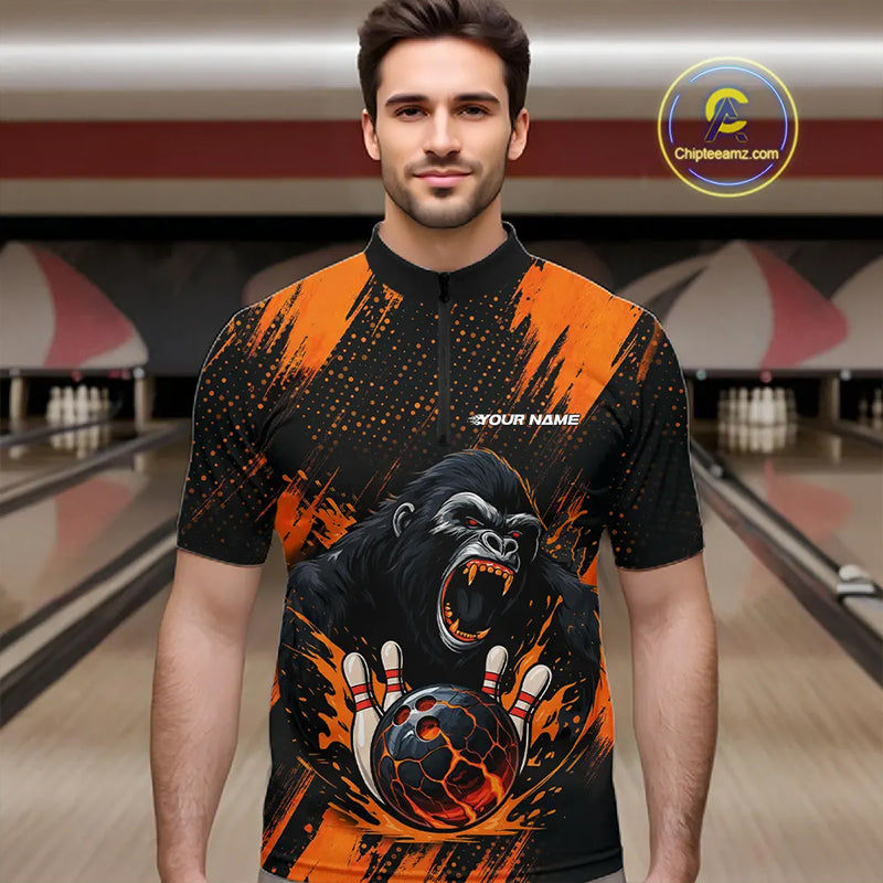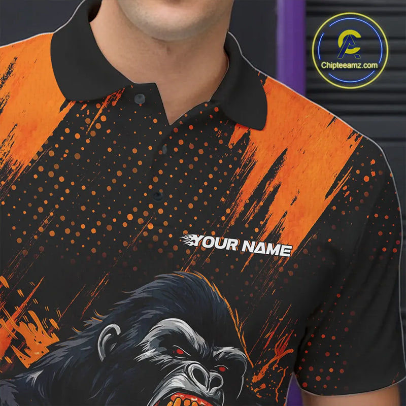 Black and Orange pattern Angry Gorilla Bowling shirts For Men Custom Gorilla Team Bowling Jerseys NQS11278