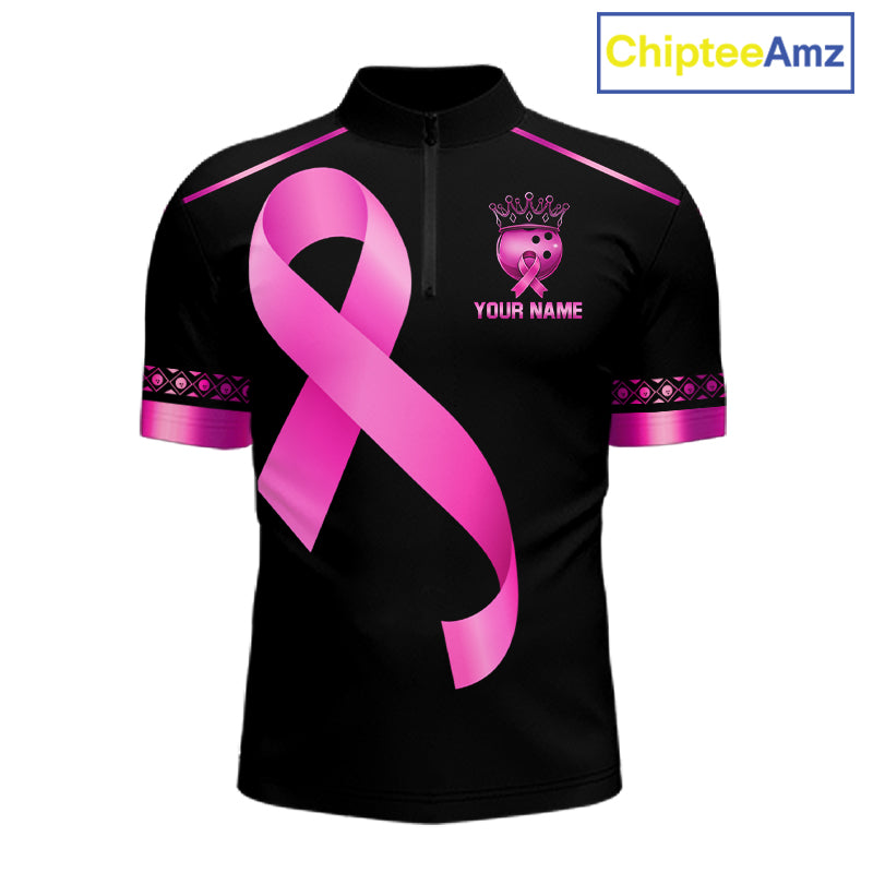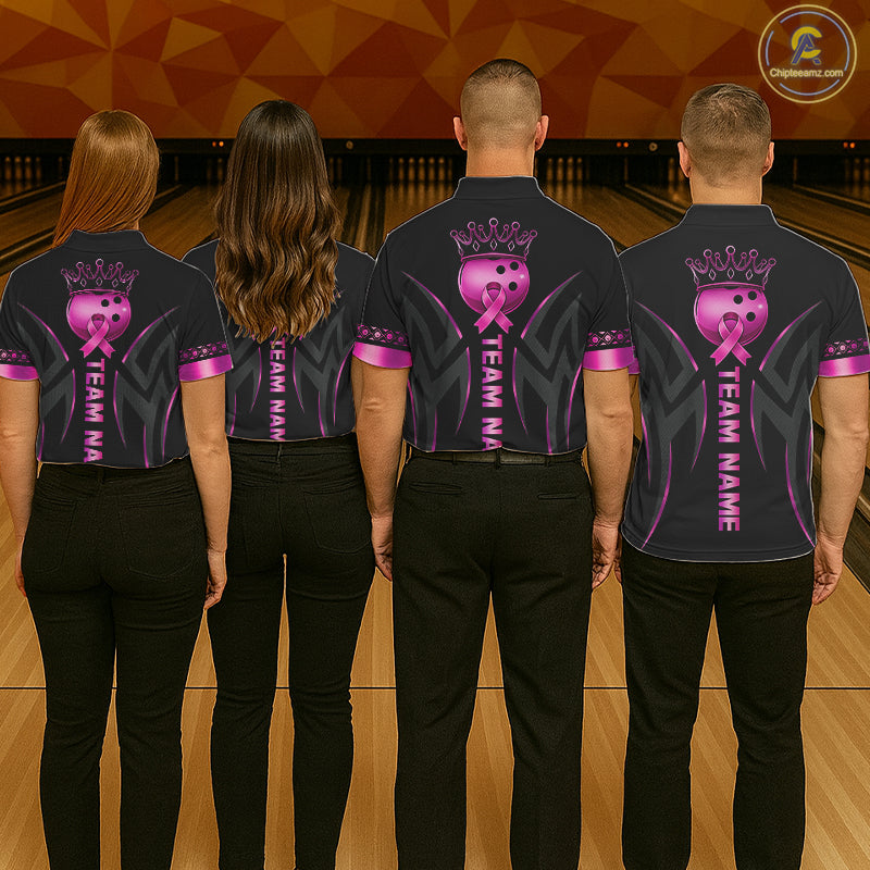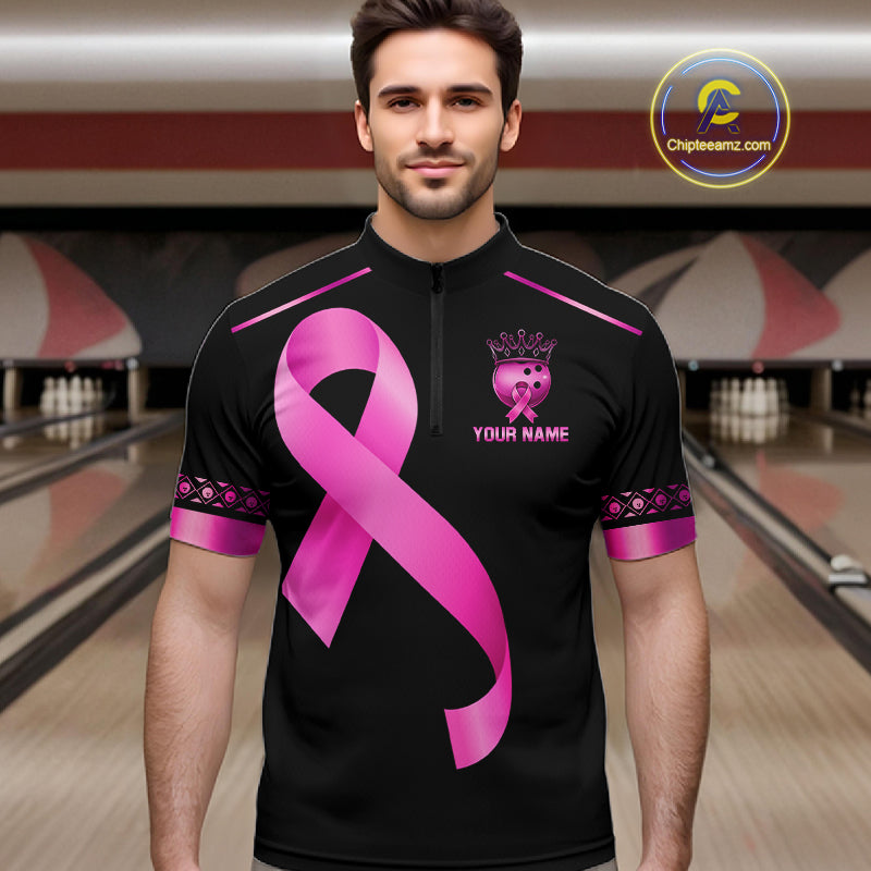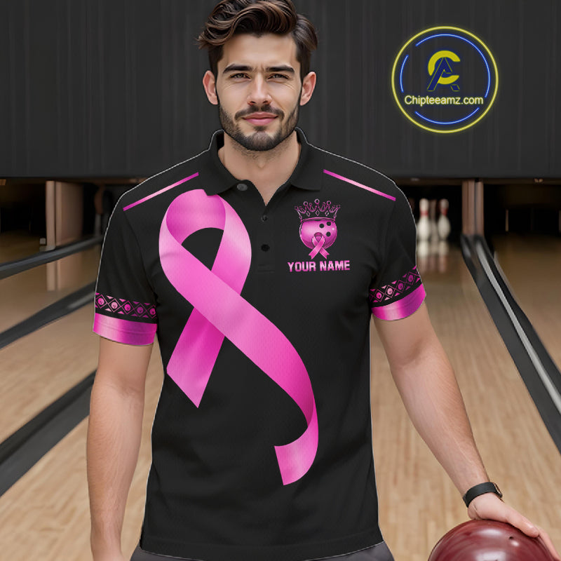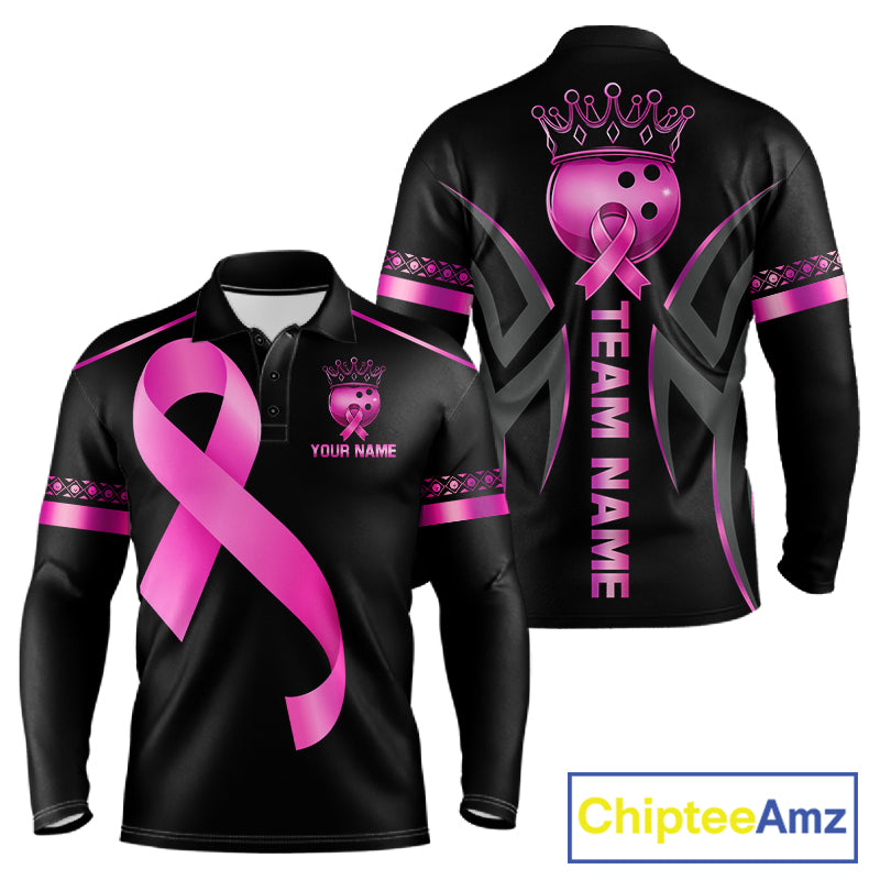 Black and Pink ribbon Breast Cancer Bowling ball Shirts for Men Custom Bowling Team jerseys NQS11691