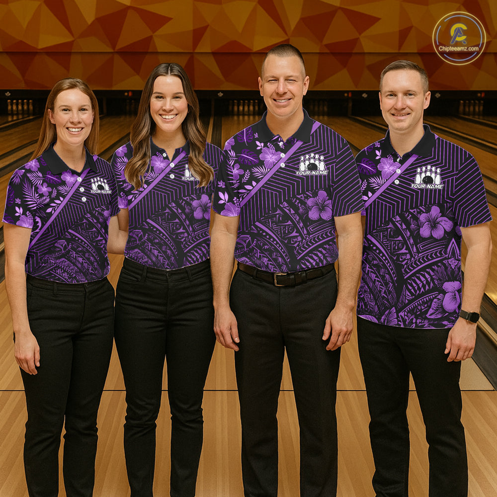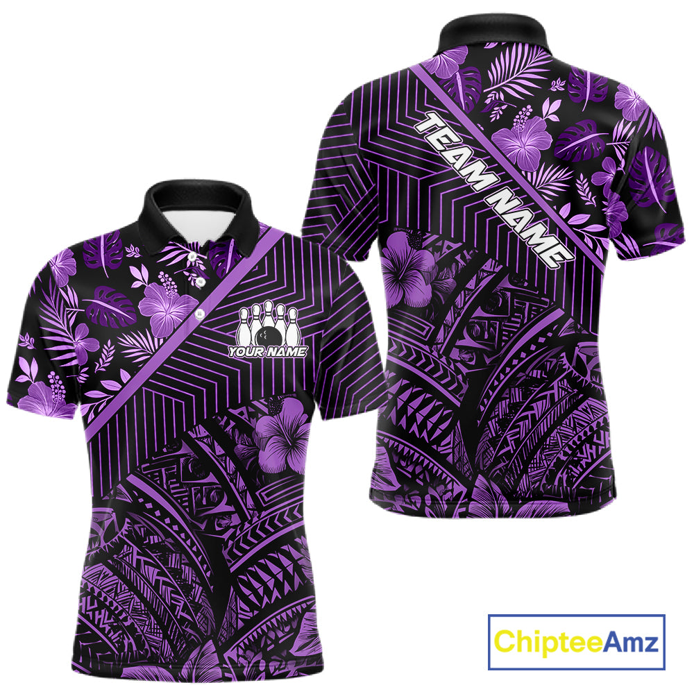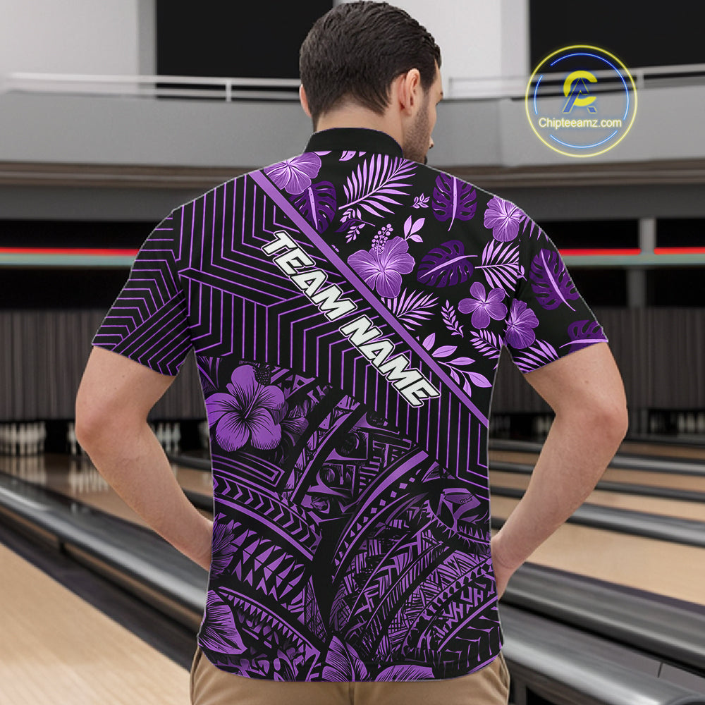 Black and Purple tribal pattern Bowling Polo, 1/4 zip Shirts For Men Custom Team Bowling Jerseys NQS11470