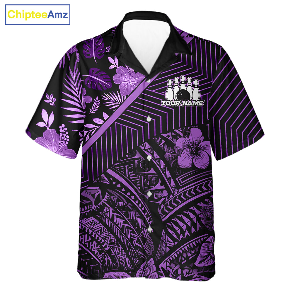 Black and Purple tribal pattern tropical Bowling Hawaiian Shirts Custom Team Bowling Jerseys NQS11470