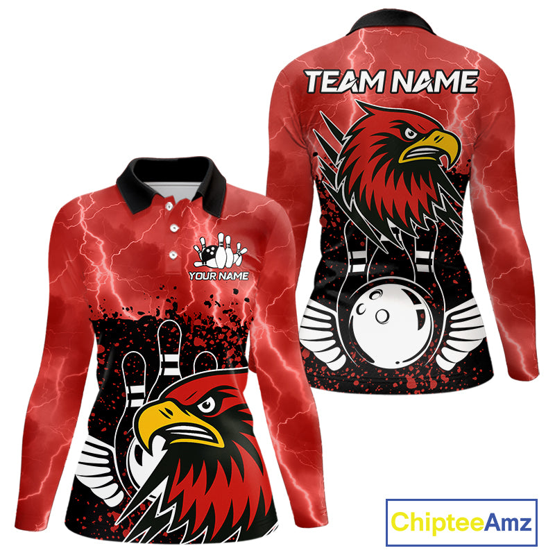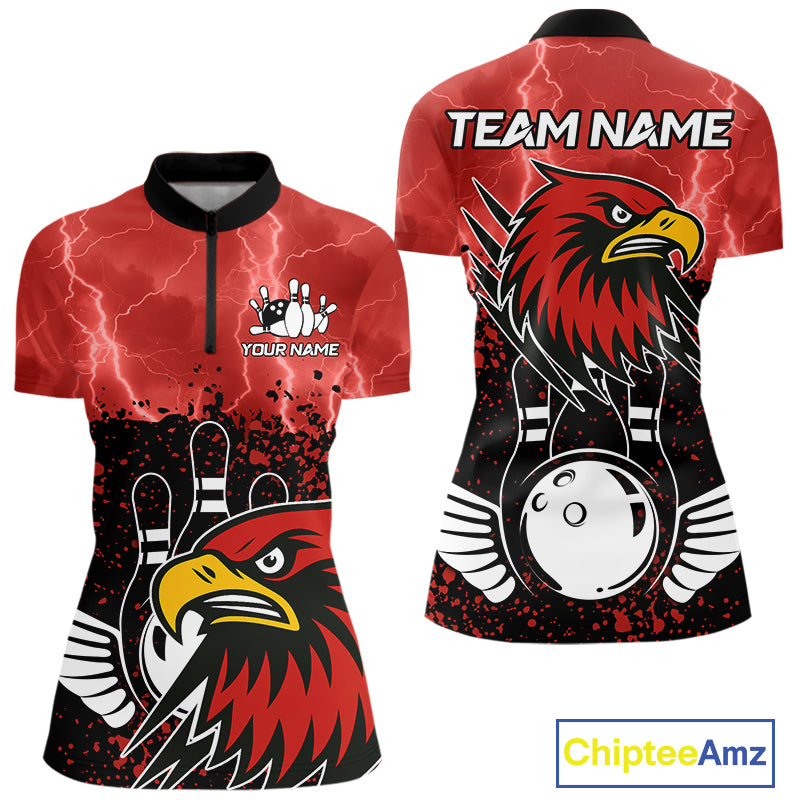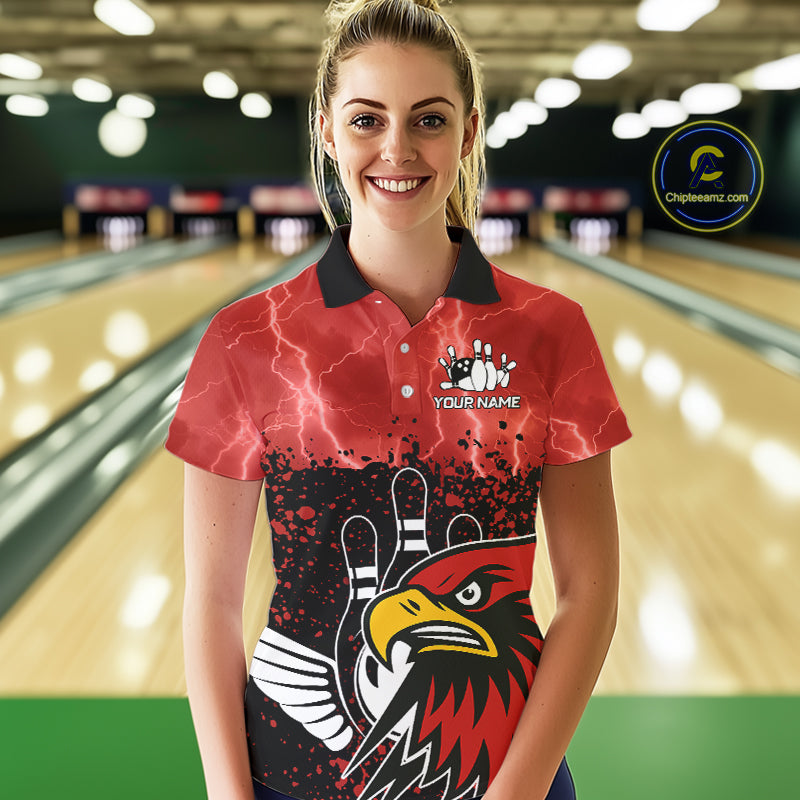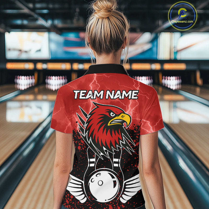 Black and Red Lightning thunder storm Eagle Bowling Shirts for Women Custom Team bowling jerseys NQS10022