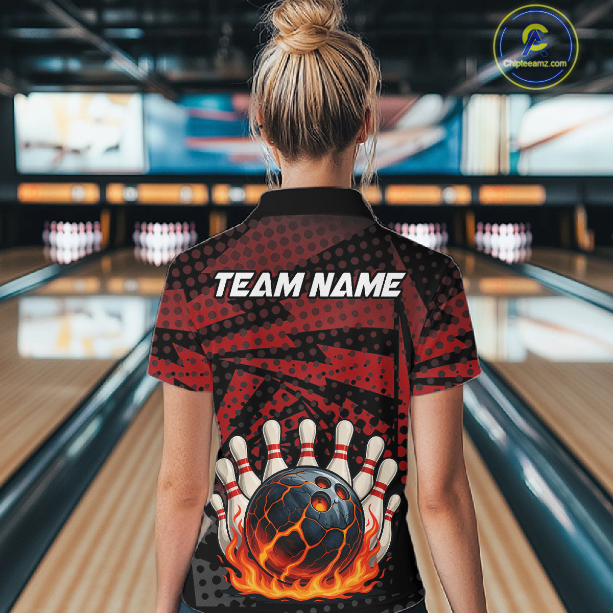 Black and Red pattern Flame Bowling Polo, 1/4 zip shirts For Women Custom Team Bowling Jerseys NQS11277