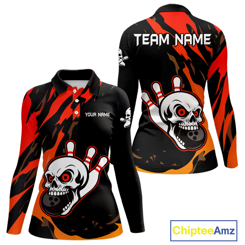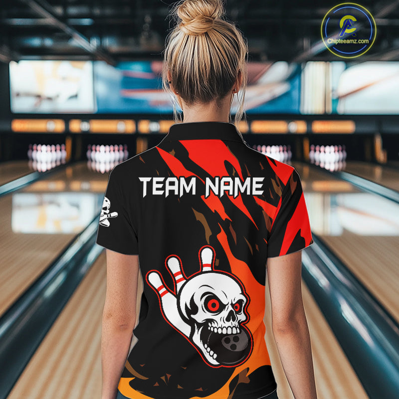 Black and Red Skull Bowling Shirts for Women Custom Team bowling jersey, gift for bowlers NQS10014