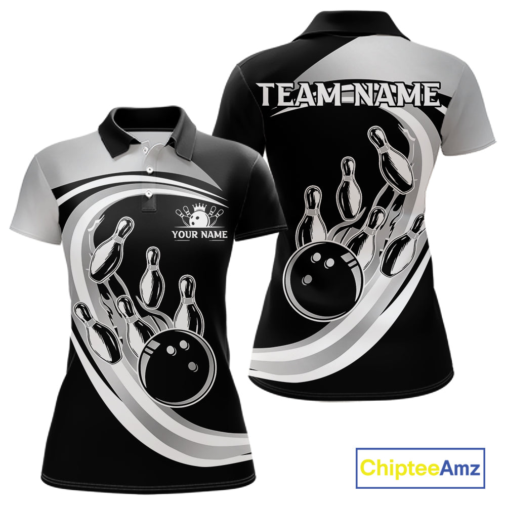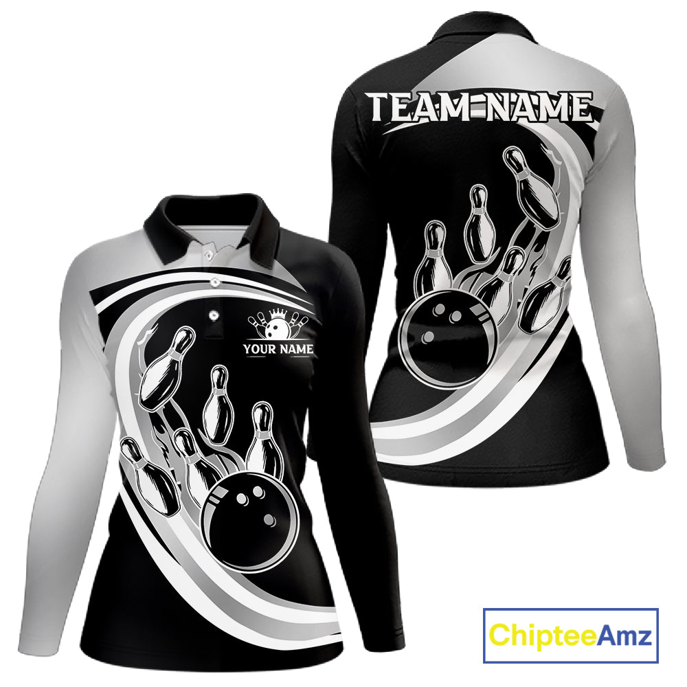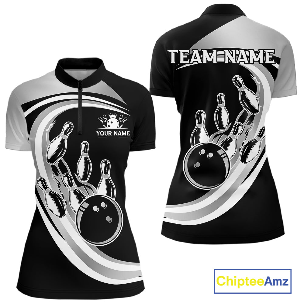 Black and Silver Bowling Shirts For Women Custom Bowling Team League Jerseys, Gift For Bowler NQS11416