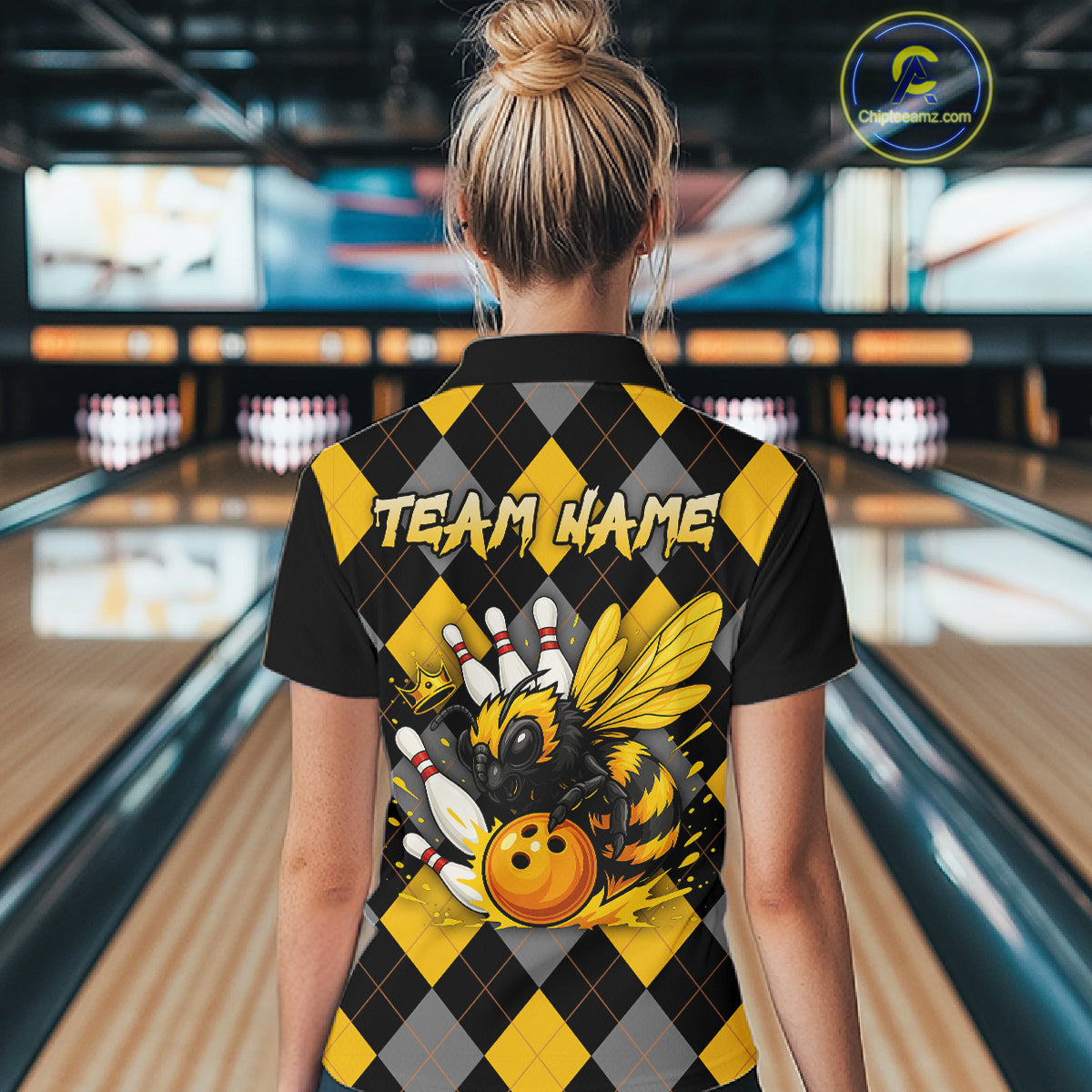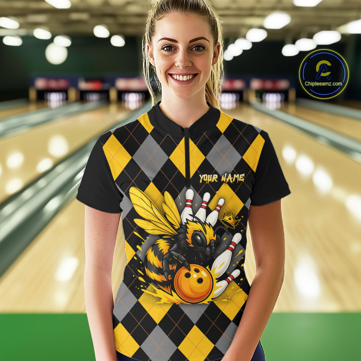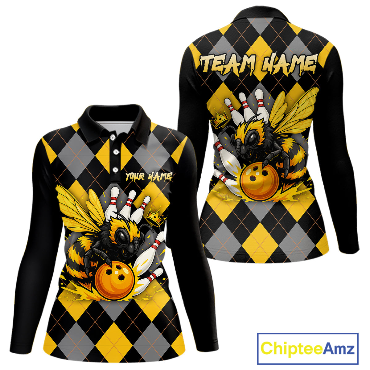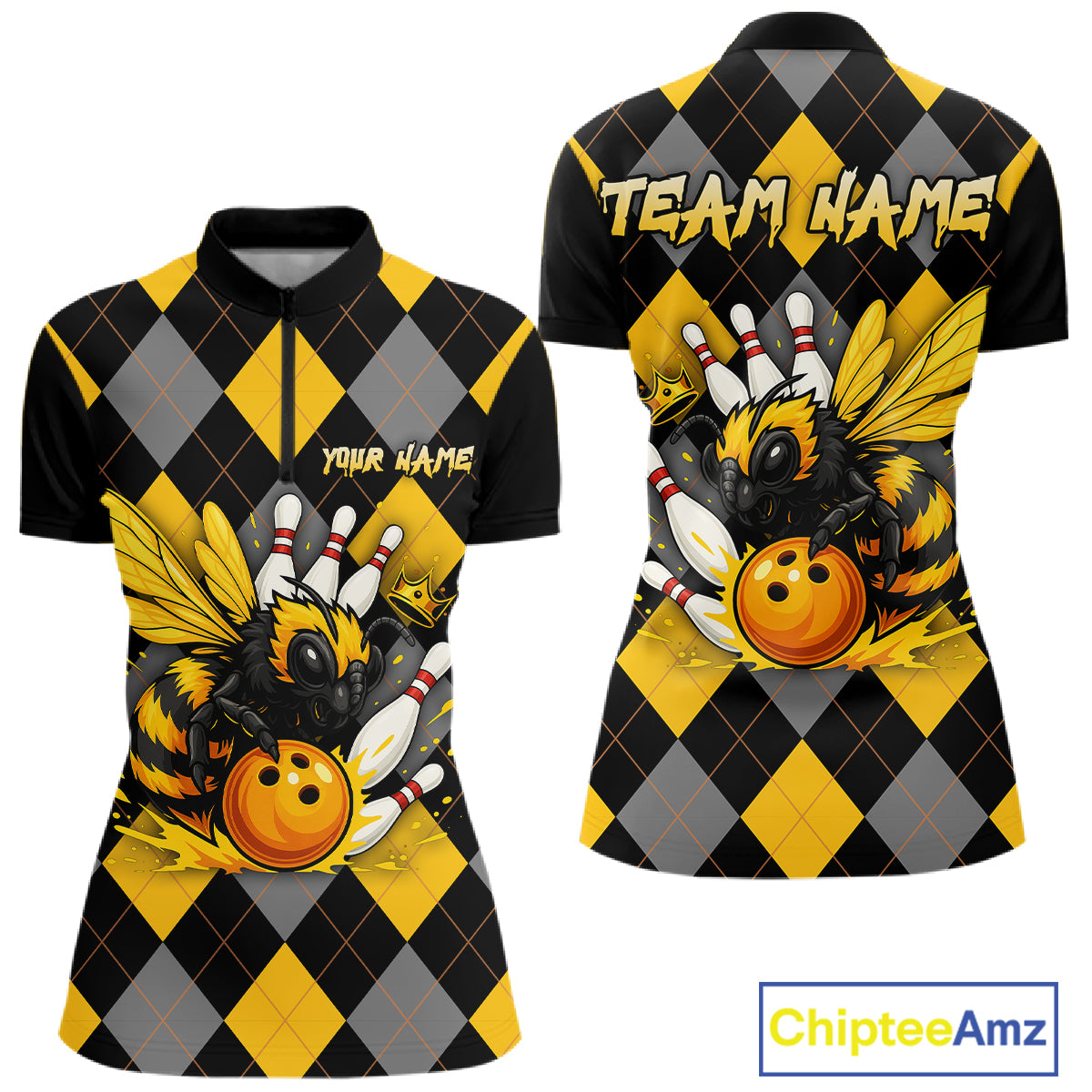 Black and Yellow argyle pattern Honey Bee Bowling shirts for Women Custom Team bowling jerseys NQS11250