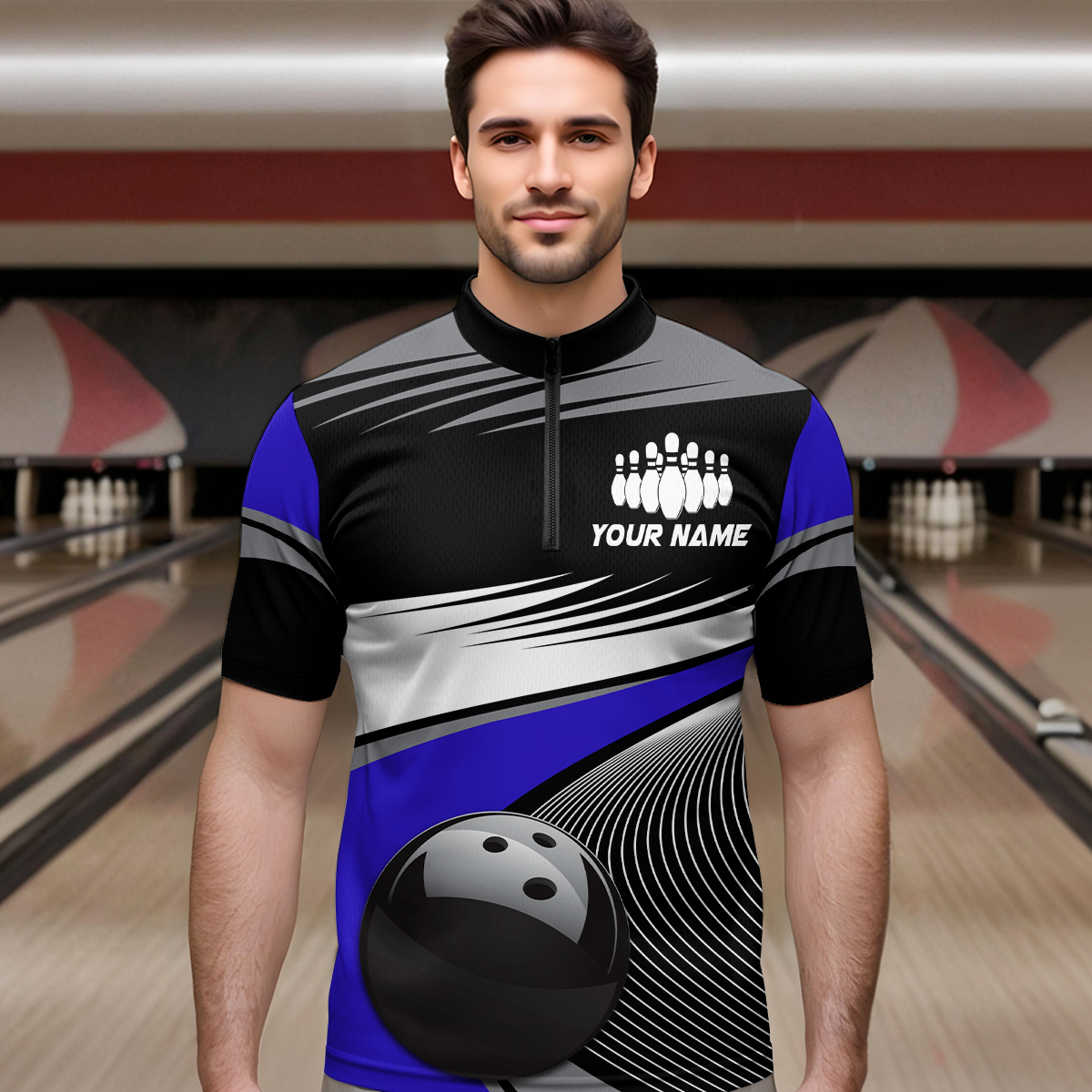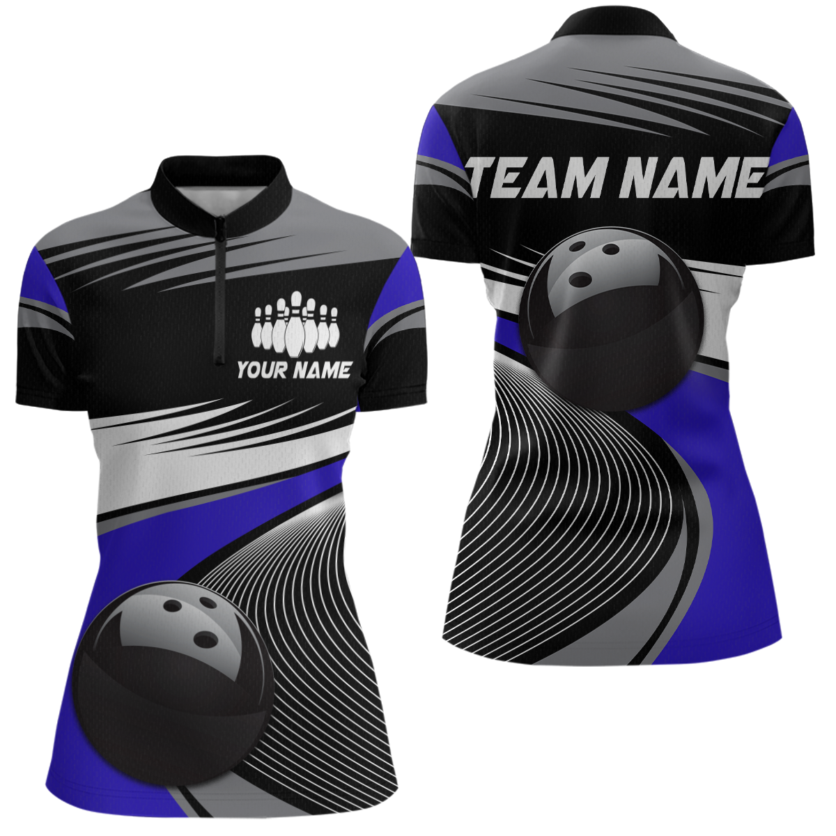 Black&Blue Bowling Shirt for Men Women Team Custom Bowling Polo & 1/4 Zip Shirt MBL43
