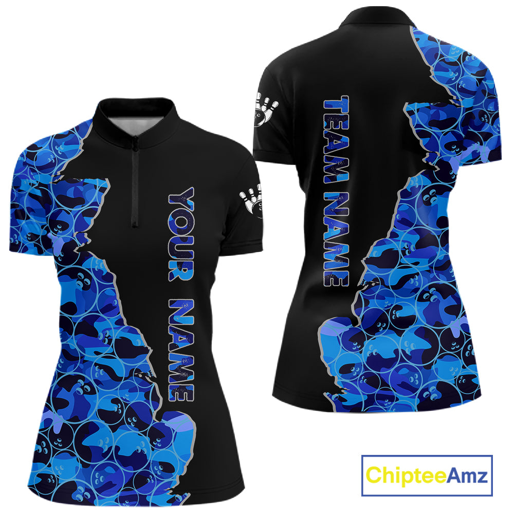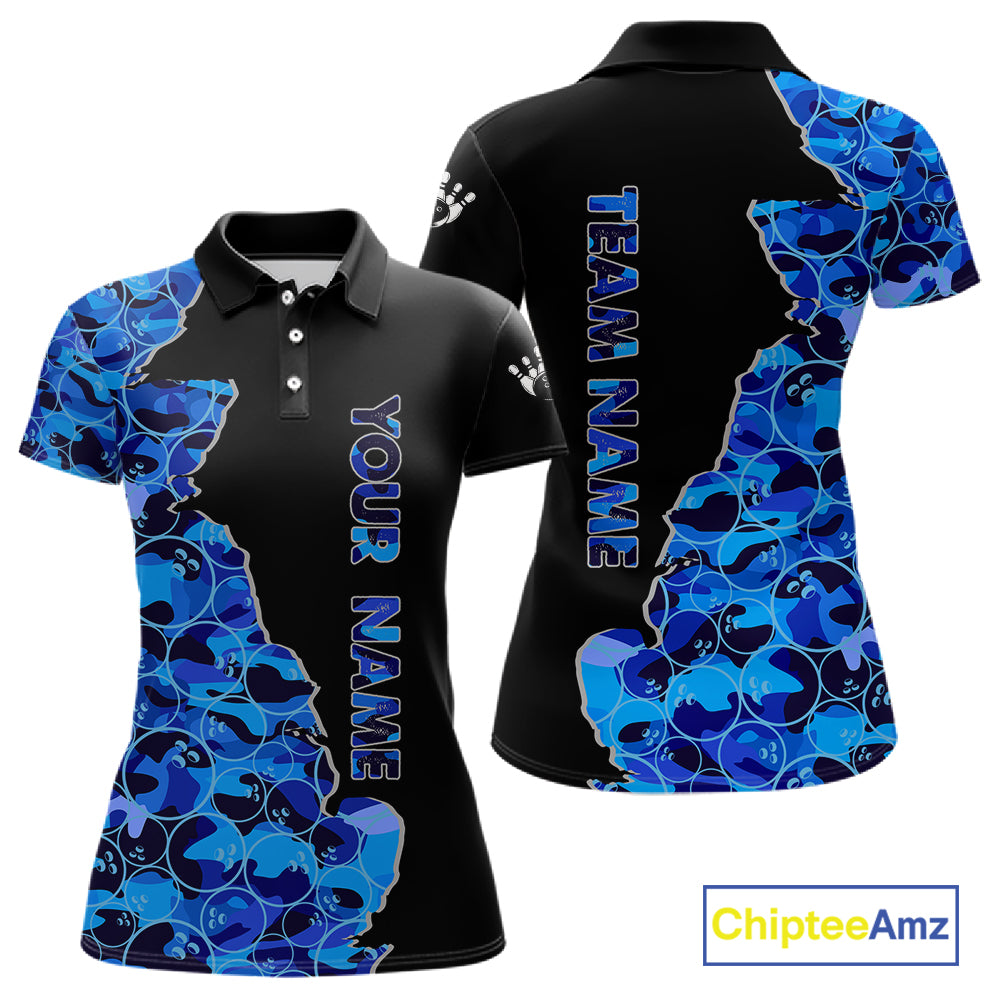 Black & Blue Camo Team Bowling Shirts For Women Custom bowling shirts with name, Team Bowling Jerseys NQS11508