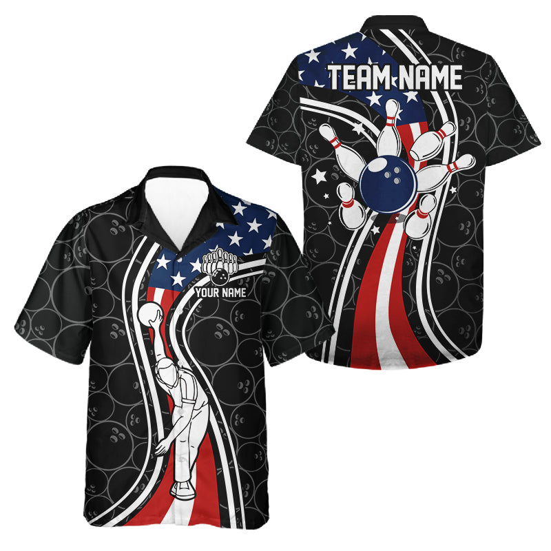 Black camo Retro bowling Hawaiian shirts Custom American flag patriotic team bowling button up jersey NQS11431