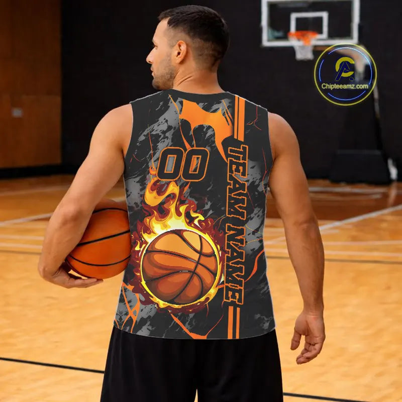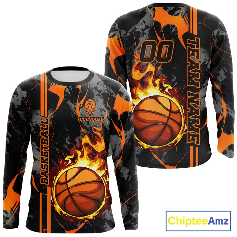 Black & Orange Camo Flame Basketball vest, t-shirt, long sleeve, hoodie custom Basketball team jersey NQS11366