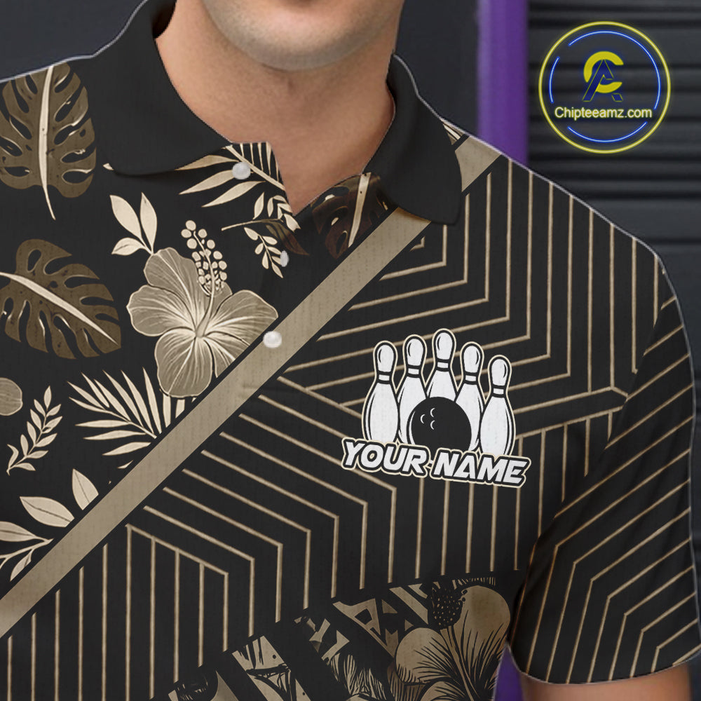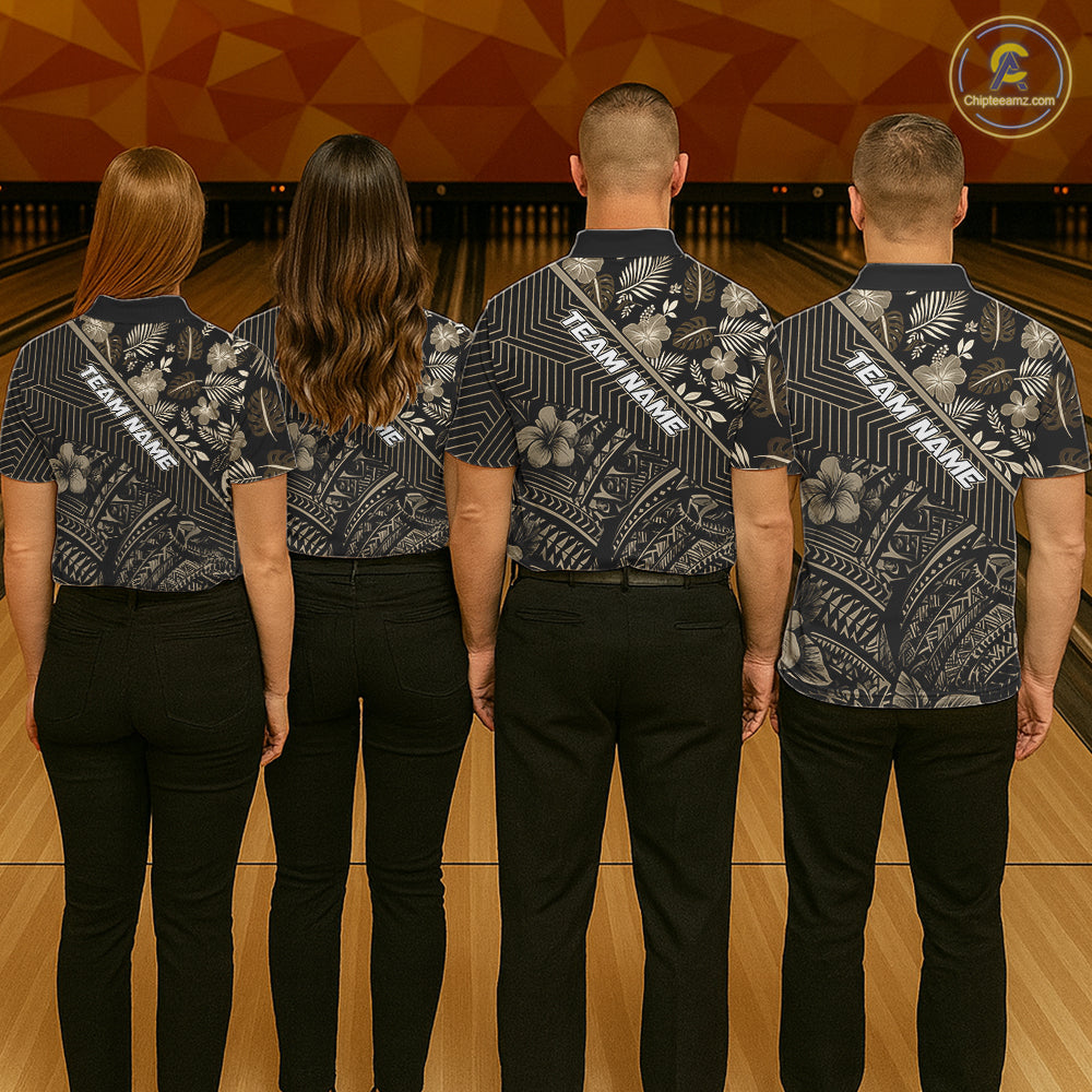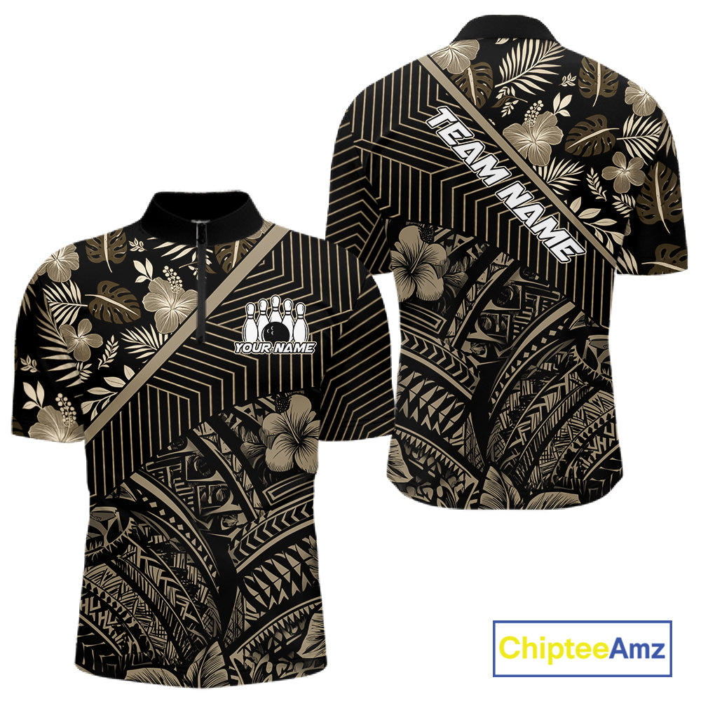 Black tribal pattern Bowling Polo, 1/4 zip Shirts For Men Custom Team Bowling Jerseys NQS11389