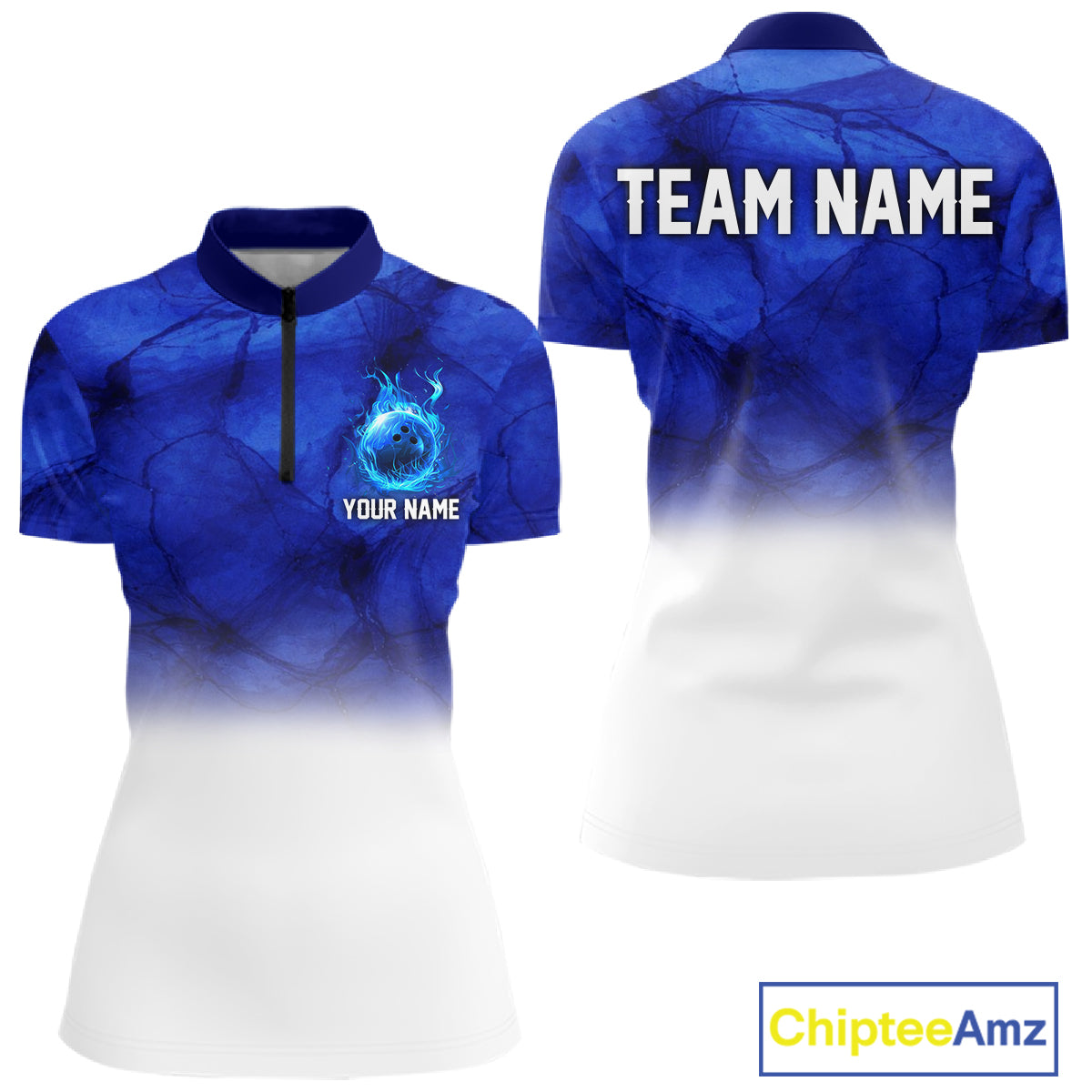Blue and White Bowling Polo, Quarter Zip Shirt For Women Custom Team Bowling jerseys NQS11321
