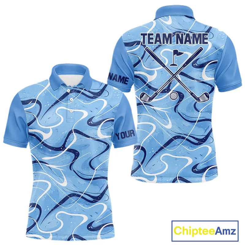 Blue And White Mens Golf Polo Shirts Custom Blue Camo Golf Tops For Men, Personalized Golf Gifts NHN0112