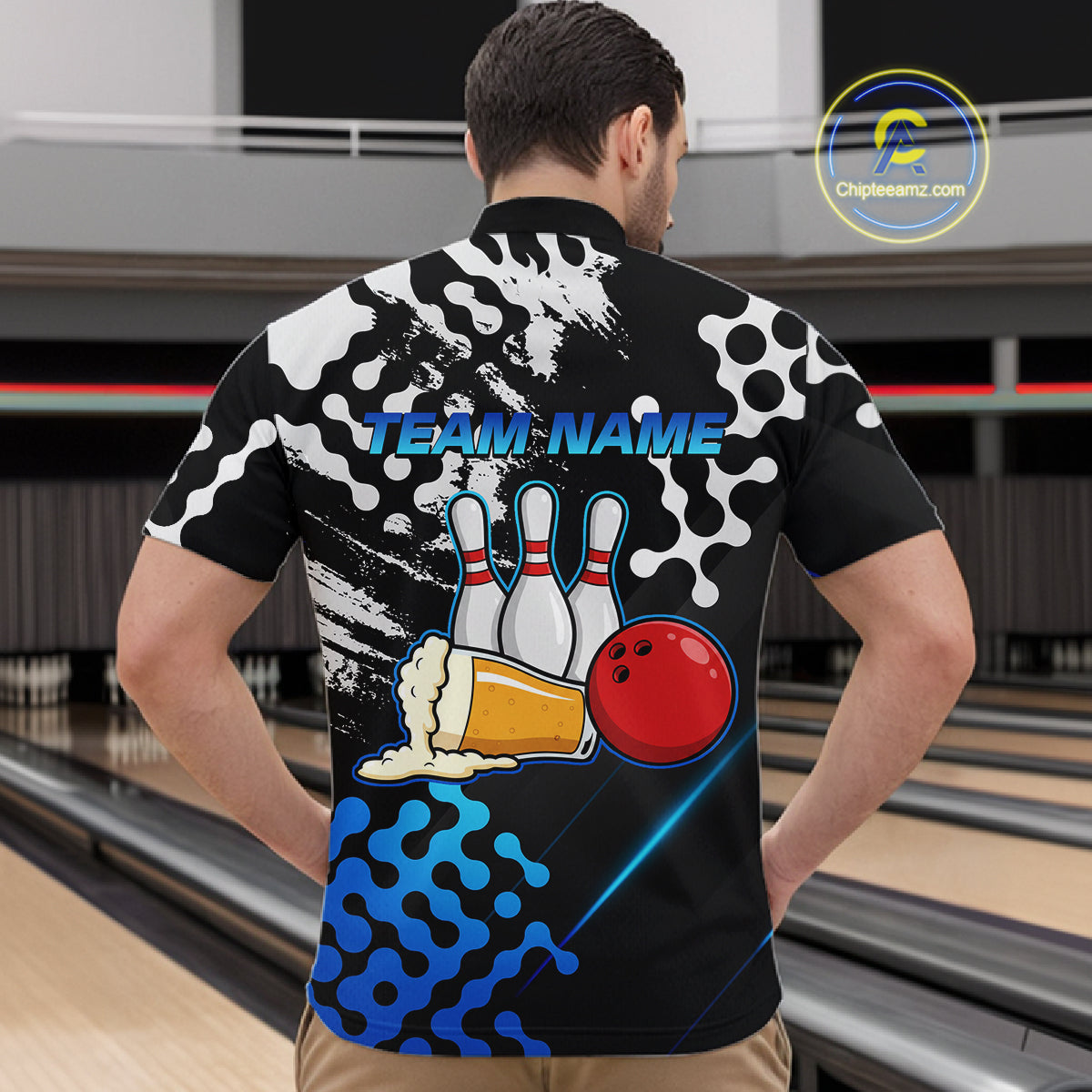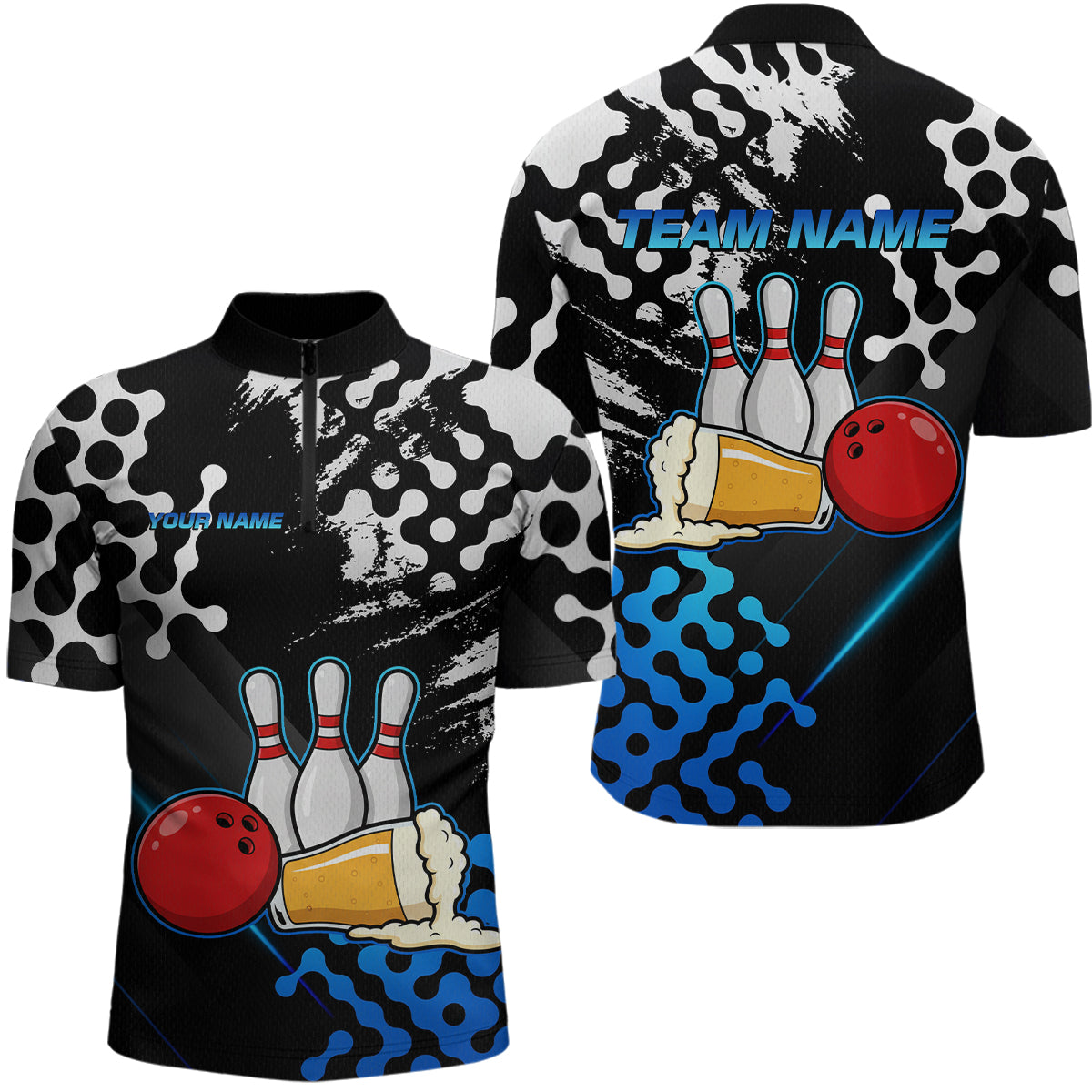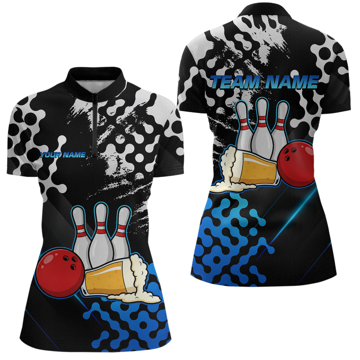 Blue Beer Bowling Shirts for Team Women Men Beer Bowling Polo&1/4 Zip Bowl League MBL255
