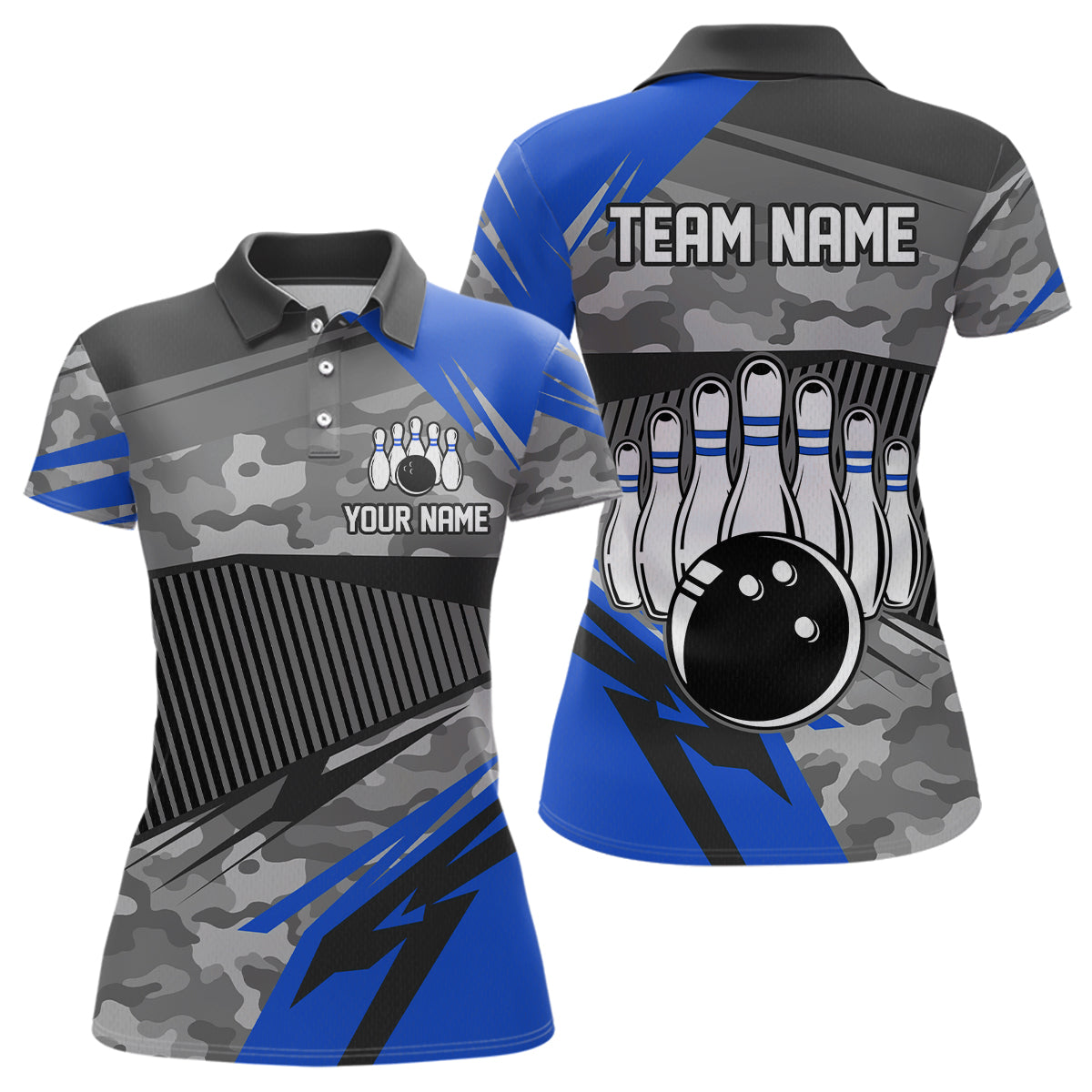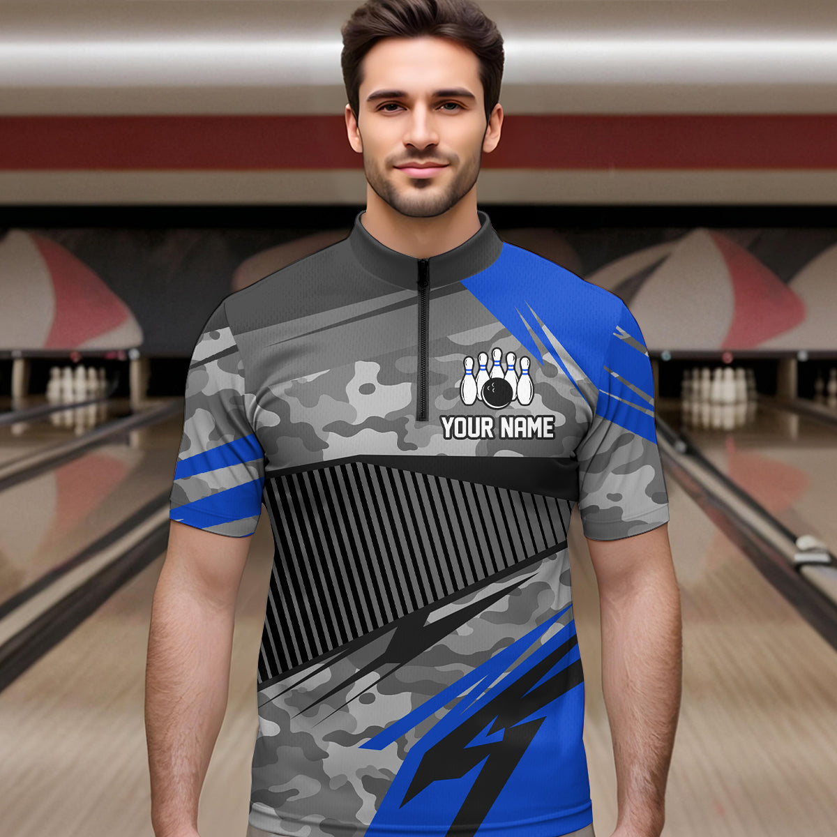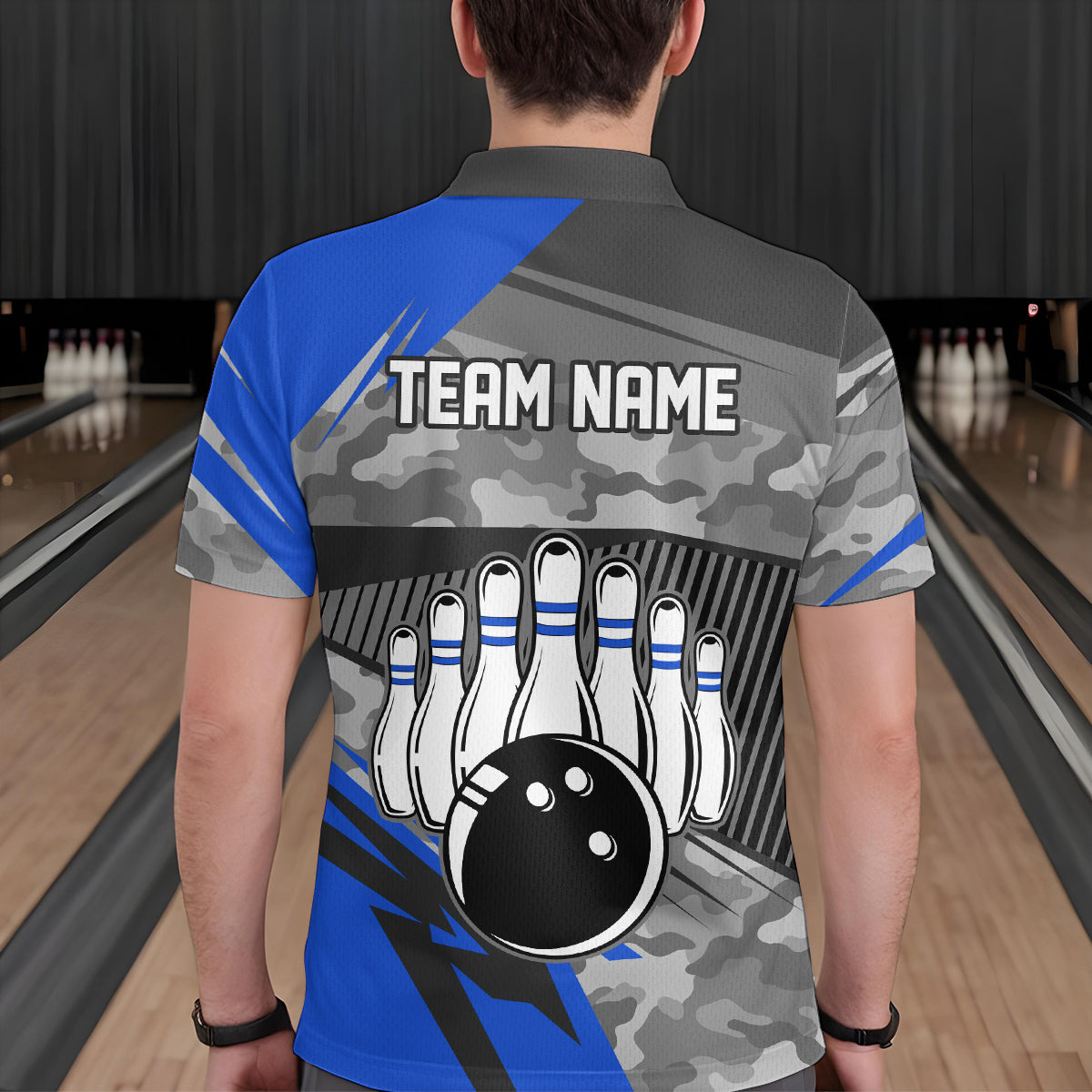 Blue Camo Bowling Shirts for Women Men Custom Team Bowling Polo & 1/4 Zip Shirt MBL61