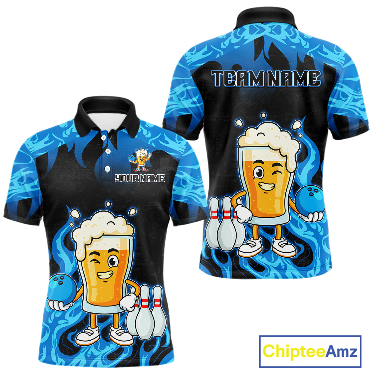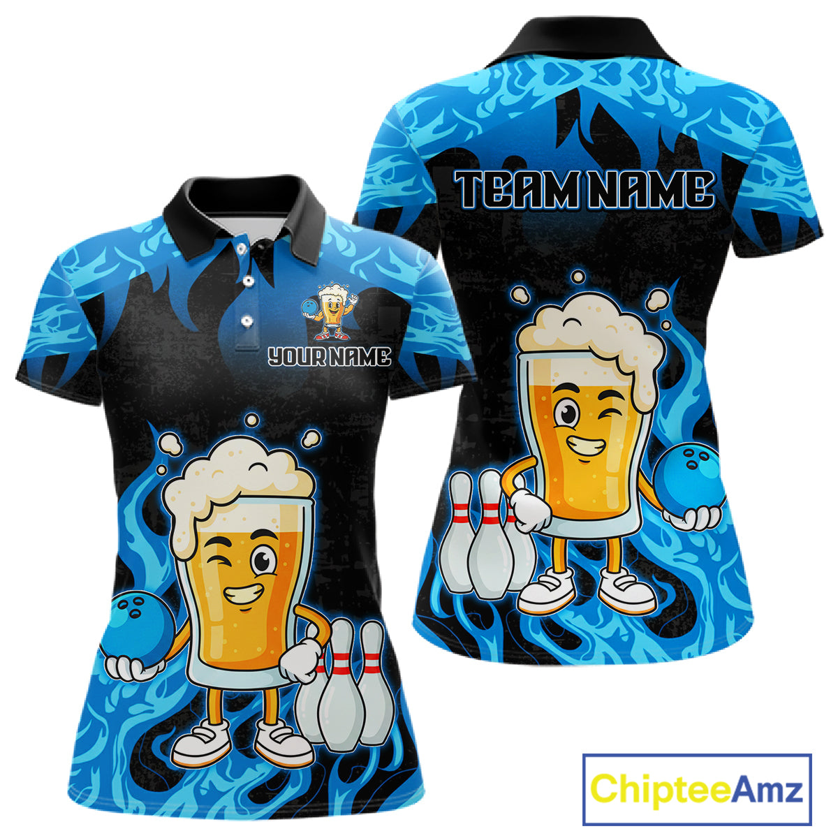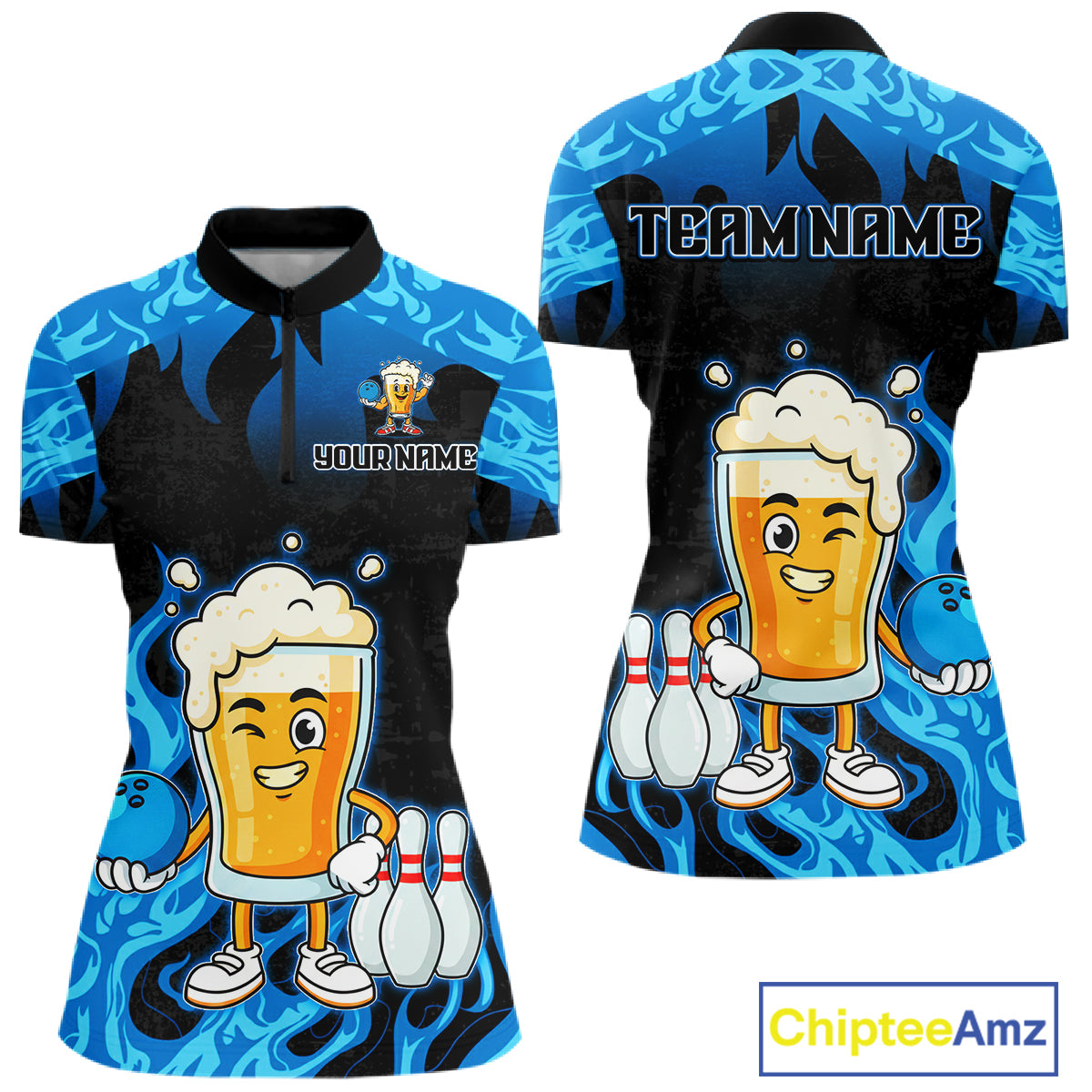 Blue Flaming Beer Bowling Shirts Beer Bowling Jersey for Team Women Men Bowler MBL262