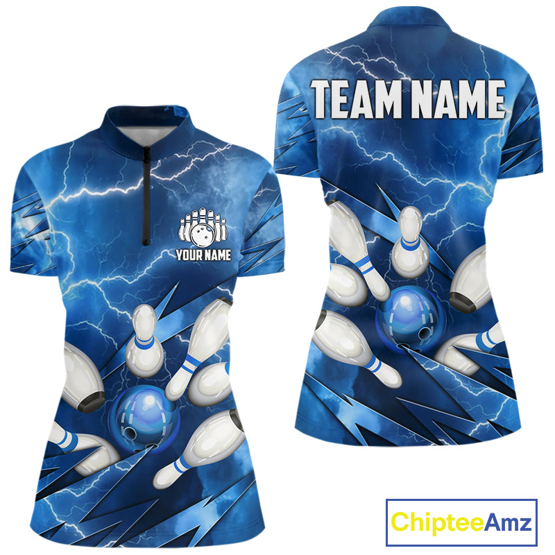 Blue Lightning Thunder Bowling Shirts For Women Custom Bowling Team League Jersey, Gift For Bowlers NQS10860
