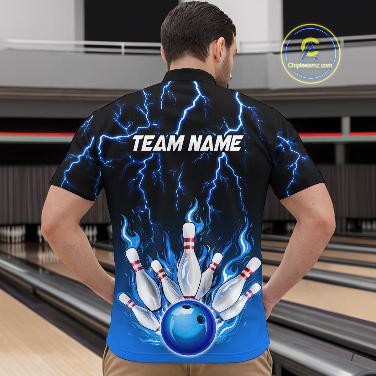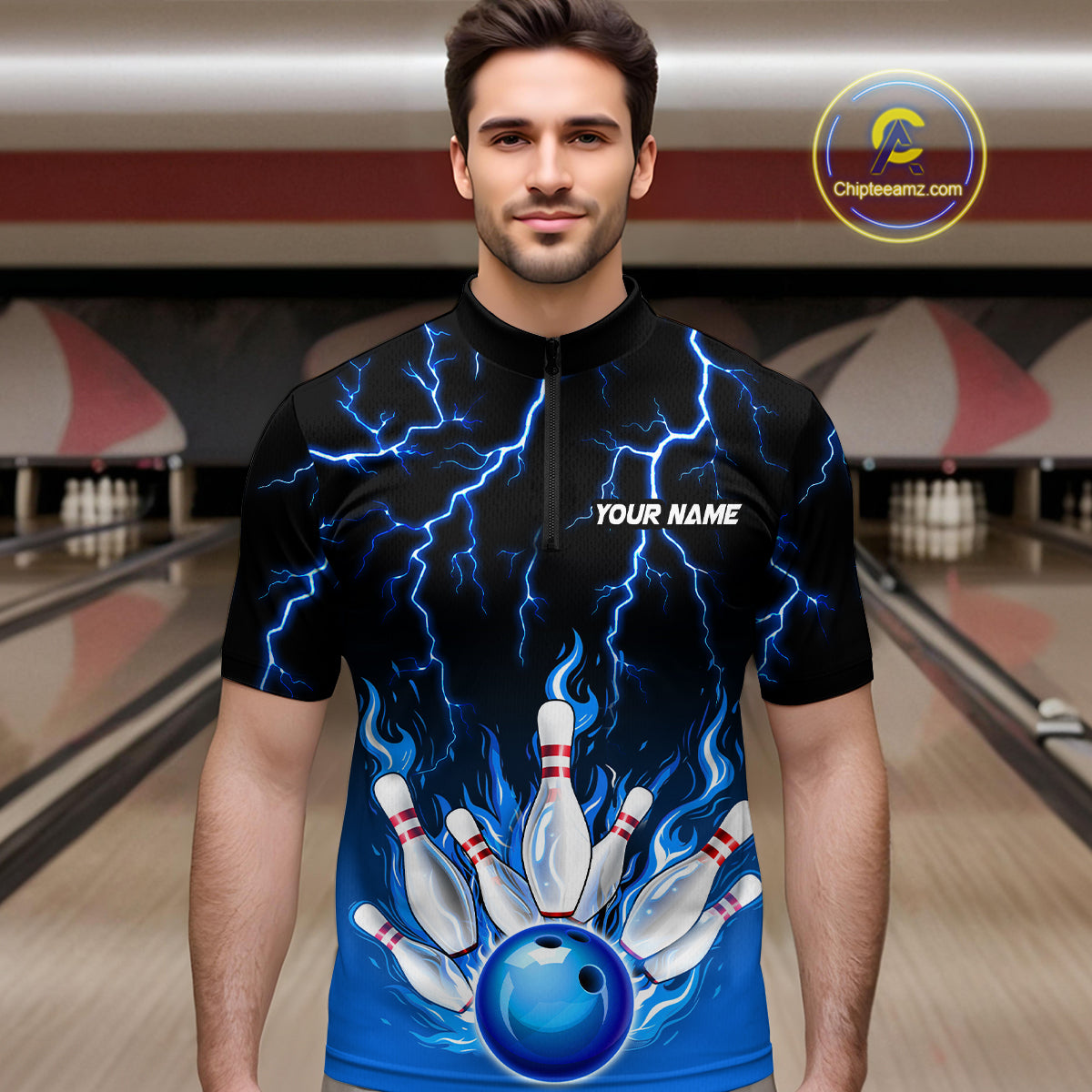 Blue Thunder Bowling Custom Men Bowling Shirt Polo & Quarter-Zip Bowling Team Shirts HNT71