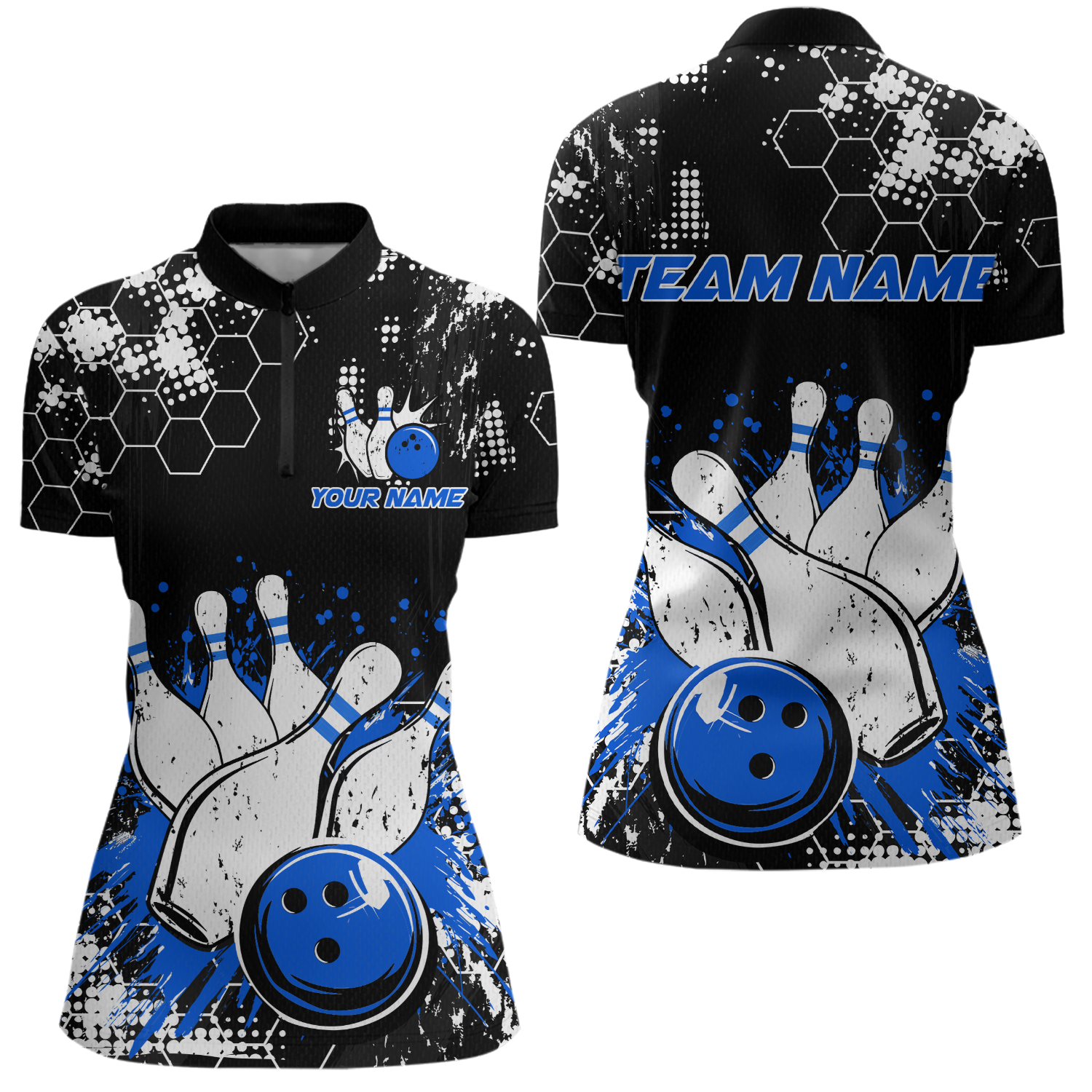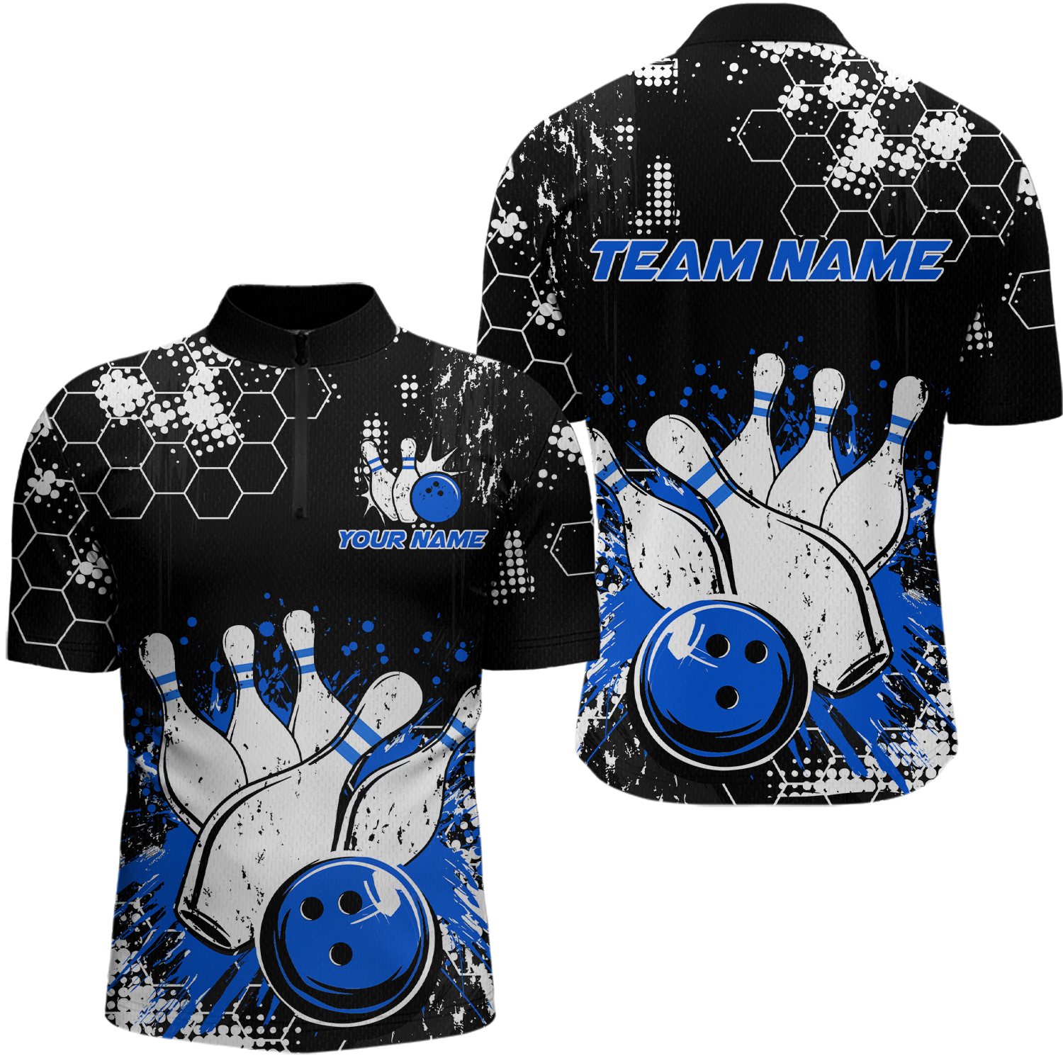 Blue Watercolor Bowling Shirts Men Women Team Custom Bowling Polo & 1/4 Zip Shirt MBL60