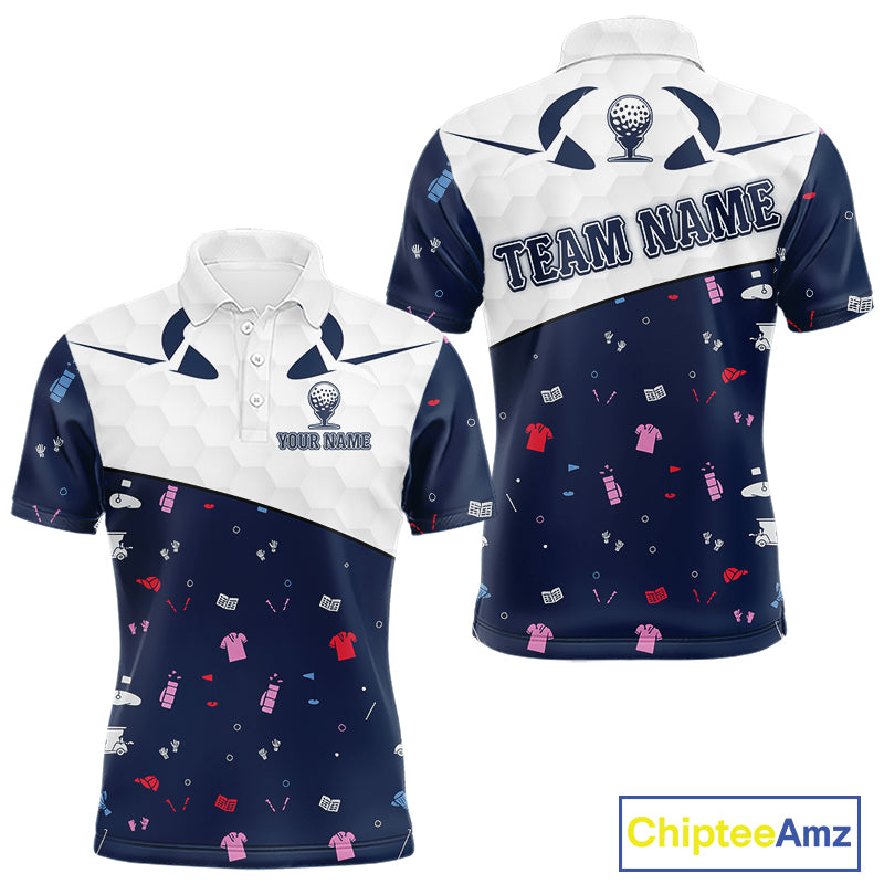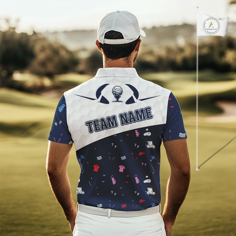 Mens Golf Polo Shirt Custom Name Funny Blue White Golf Ball Pattern Men Golf Wear Top For Team NHN0025