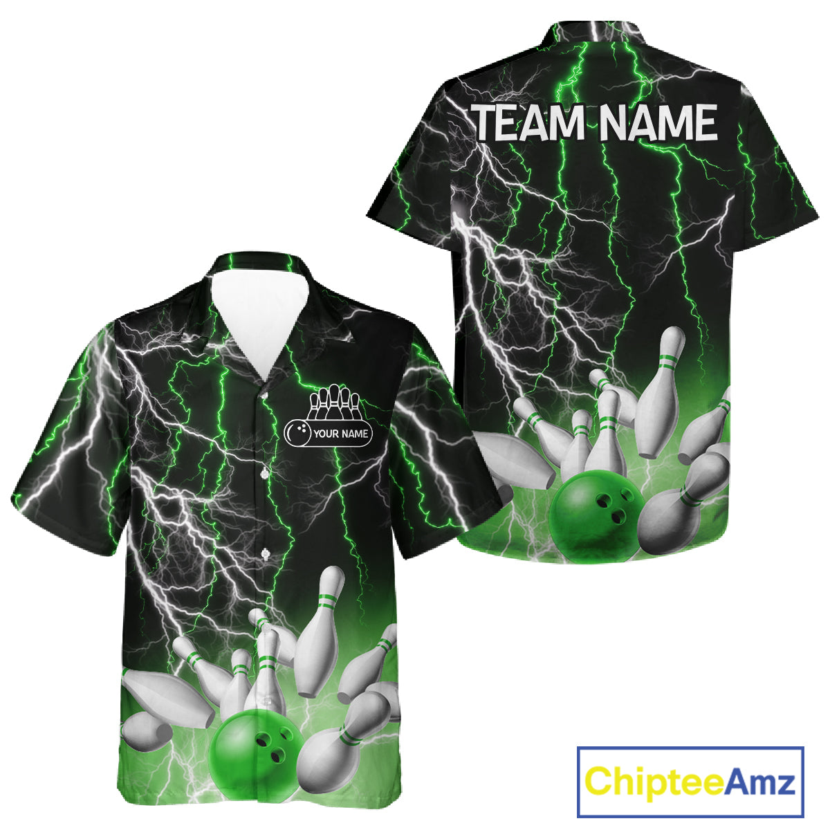 Bowling Hawaiian Shirt Custom Green lightning thunder team bowling league jerseys NQS11262