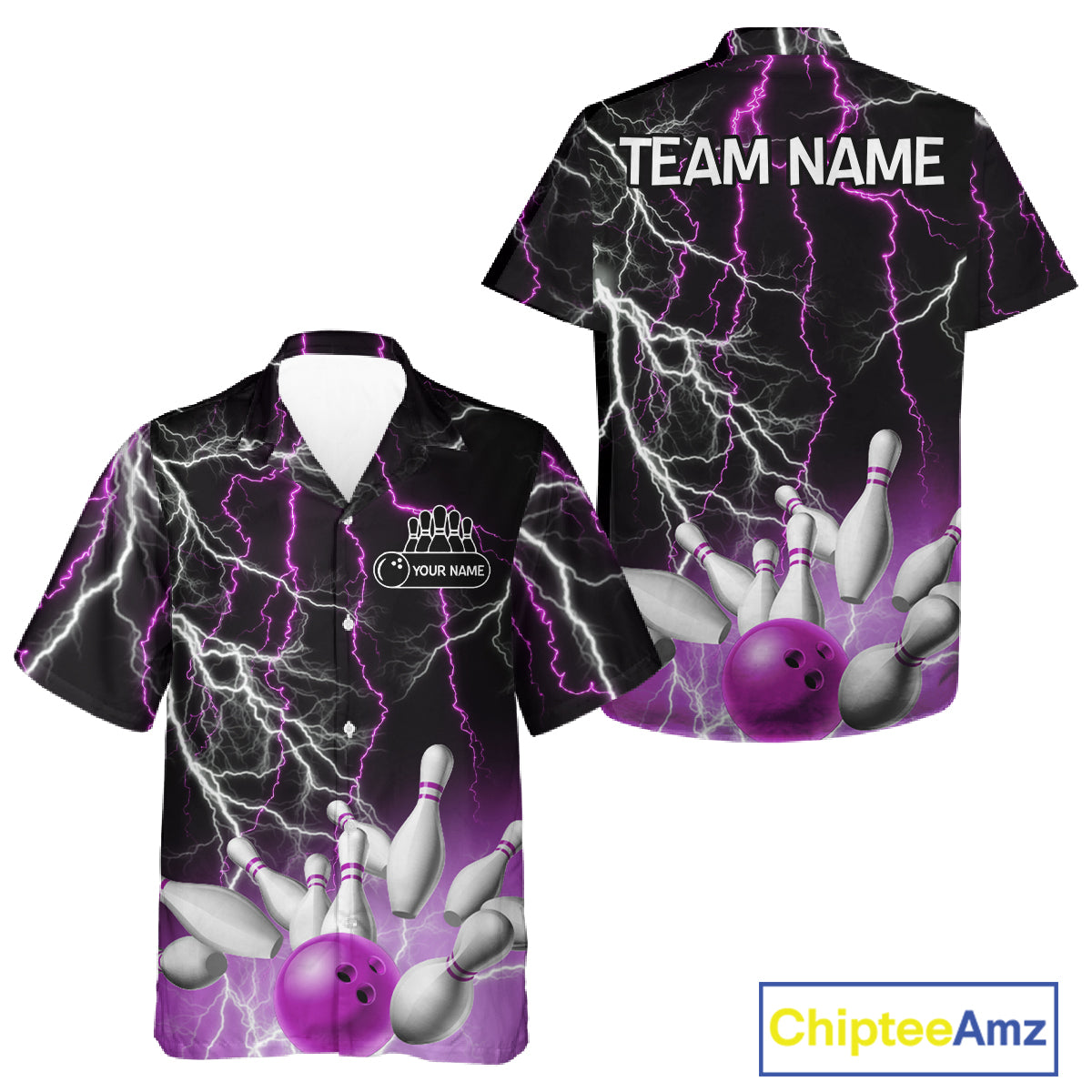 Bowling Hawaiian Shirt Custom Purple lightning thunder team bowling league jerseys NQS11263