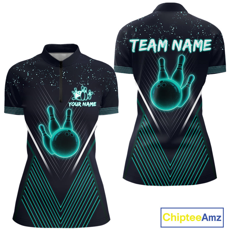 Bowling polo, quarter zip shirt for Women custom team bowling jersey, gift for bowlers | Turquoise NQS10256