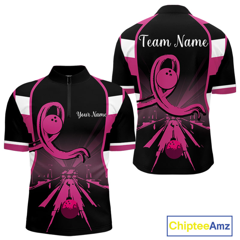 Breast Cancer Awareness Bowling Shirts For Men custom Black and pink ribbon team bowling jerseys NQS10207