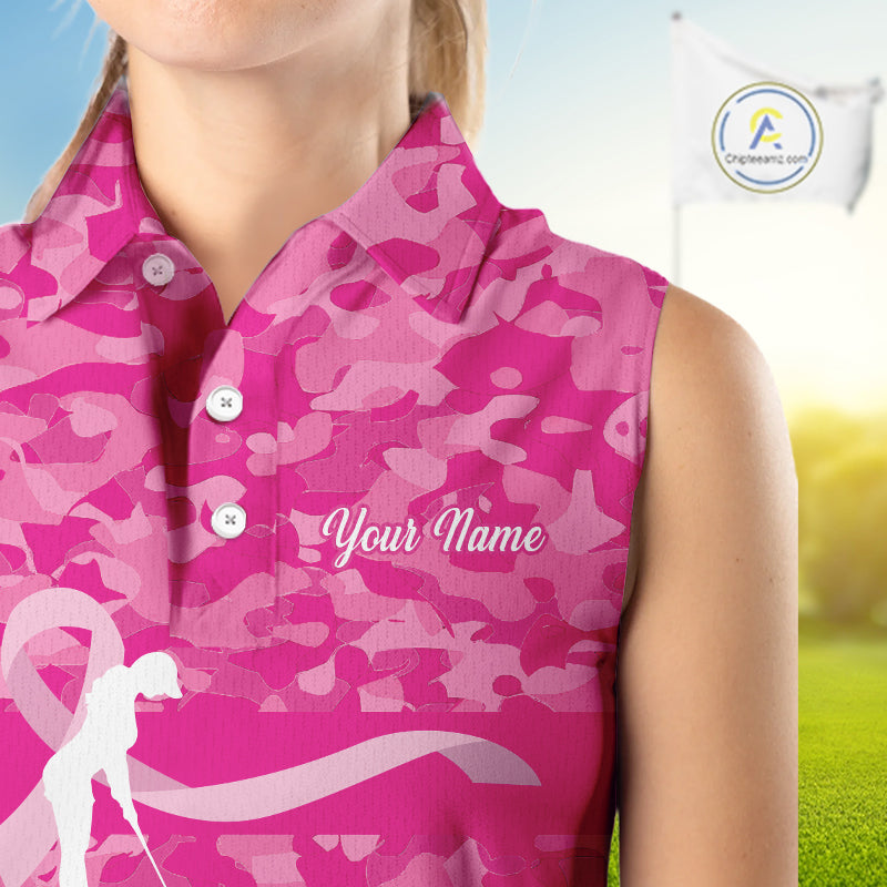 Breast Cancer Awareness golf shirts custom Women sleeveless golf polos, pink camo ribbon golf shirts NQS10191