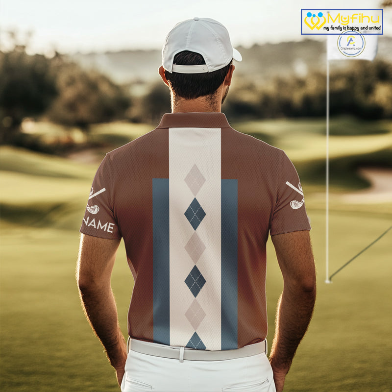 Brown Argyle Pattern Mens Golf Polo Shirts Custom Vintage Style For Golf Lovers Gift For Men NQS10233