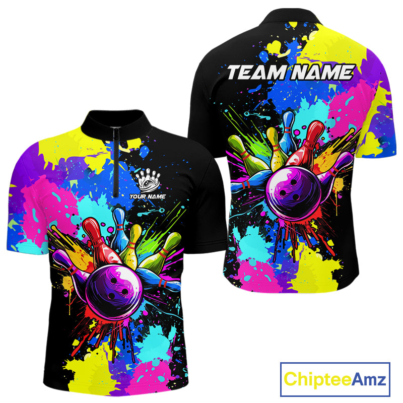 Colorful bowling jerseys Bowling Polo, 1/4 Zip Shirt for Men Custom Bowling Team shirts for bowlers NQS10240