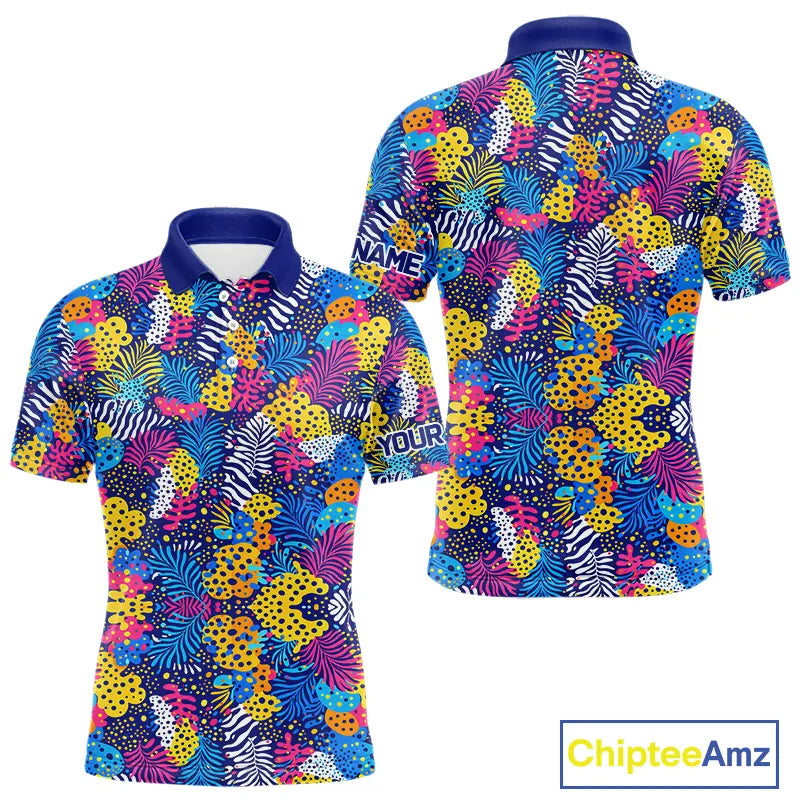 Colorful Paisley Pattern Mens Golf Polo Shirts Custom Tropical Golf Attire For Team NHN0147