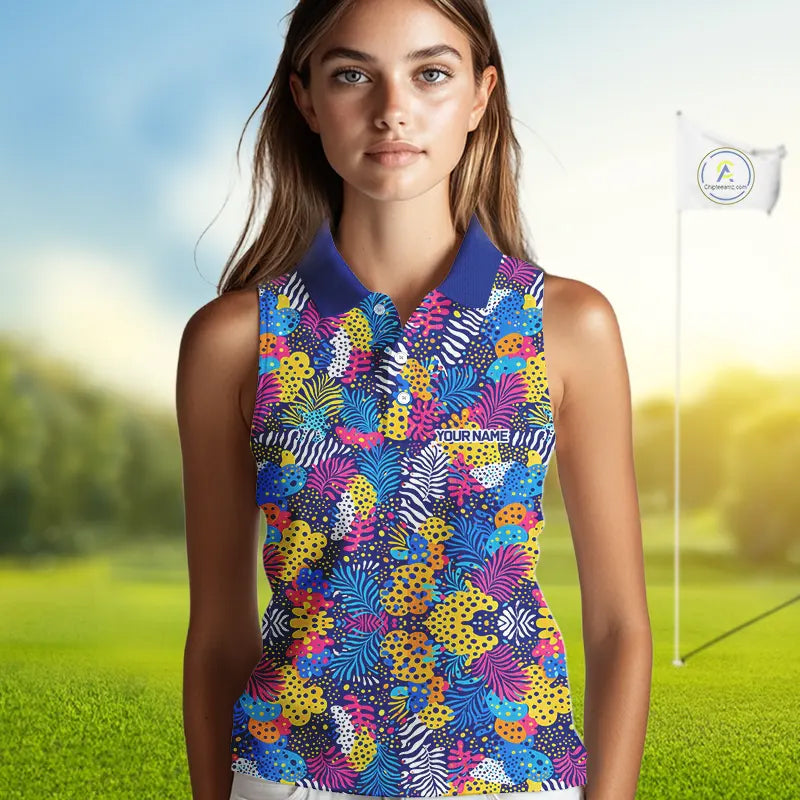 Colorful Paisley Pattern Womens Sleeveless Golf Polo Shirt Custom Tropical Golf Attire For Ladies NHN0147