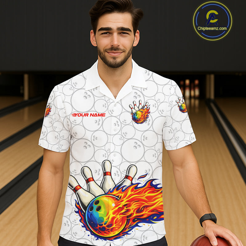Colorful rainbow flame Bowling Hawaiian Shirt Custom white camo Bowling Team jerseys NQS11319