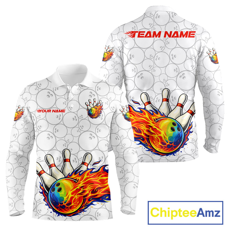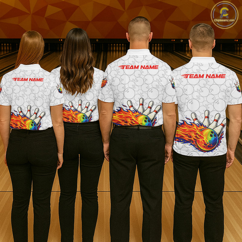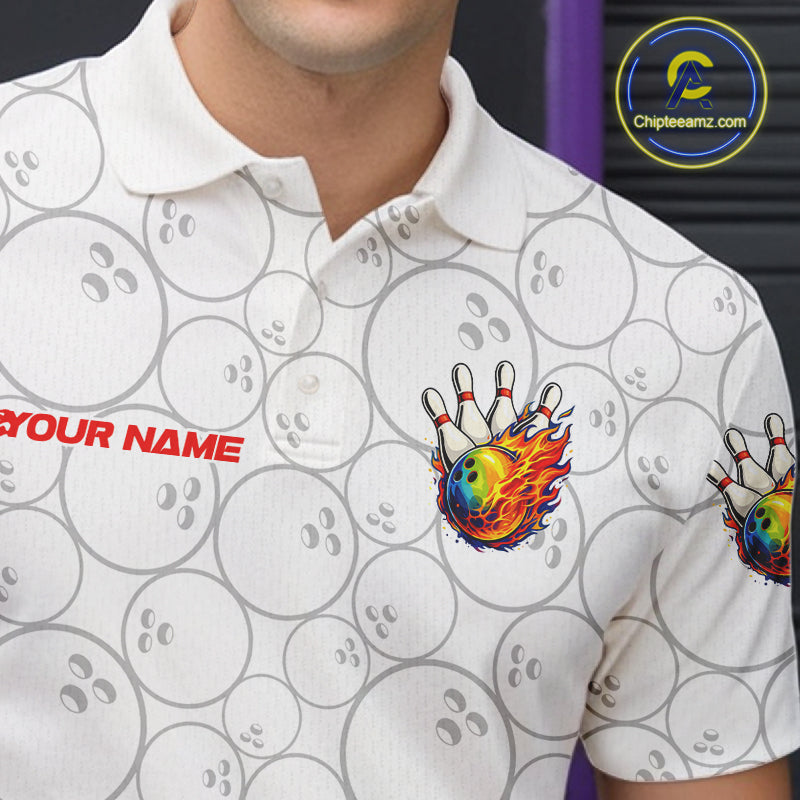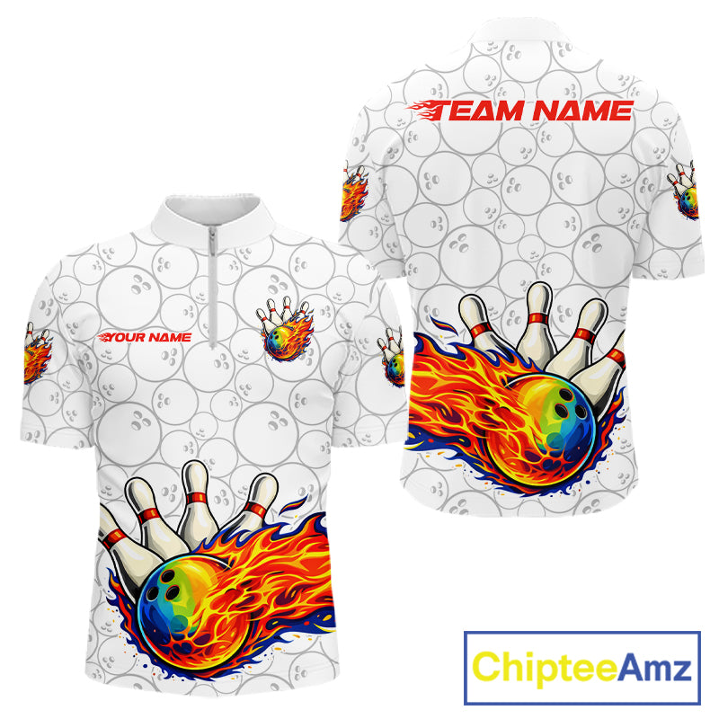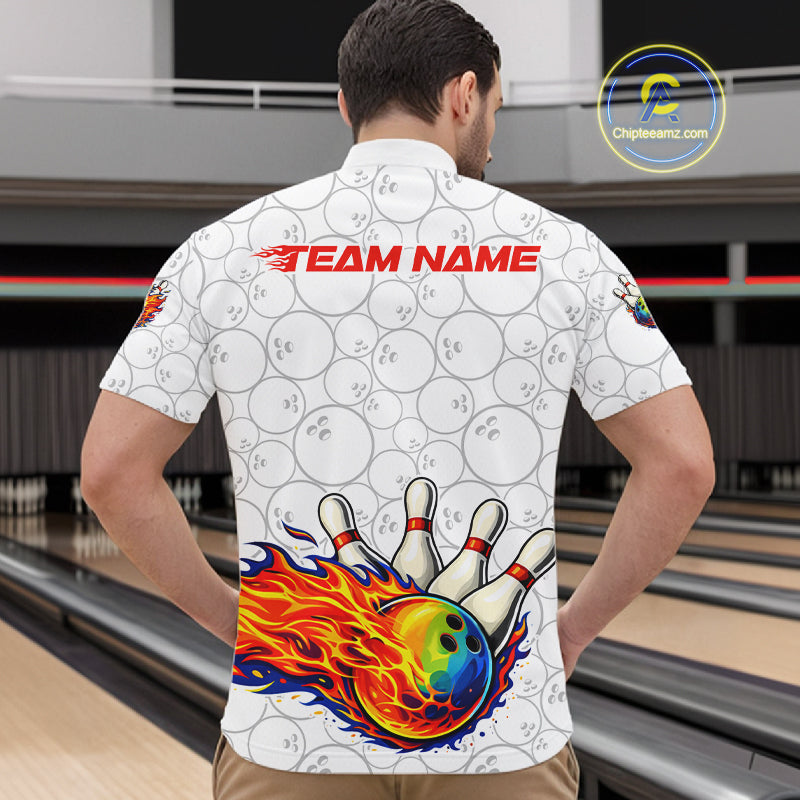 Colorful rainbow flame Bowling Polo, 1/4 zip Shirt For Men Custom white camo Bowling Team jerseys NQS11319