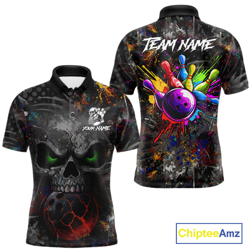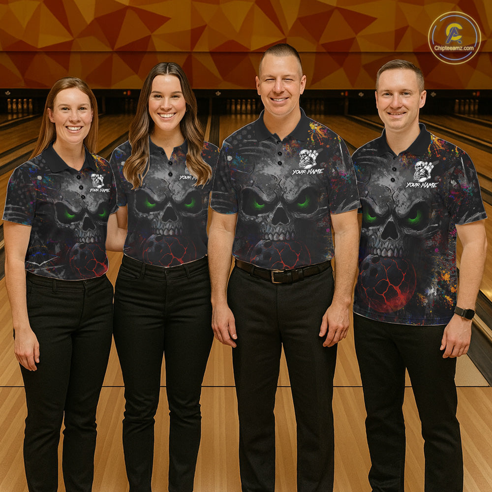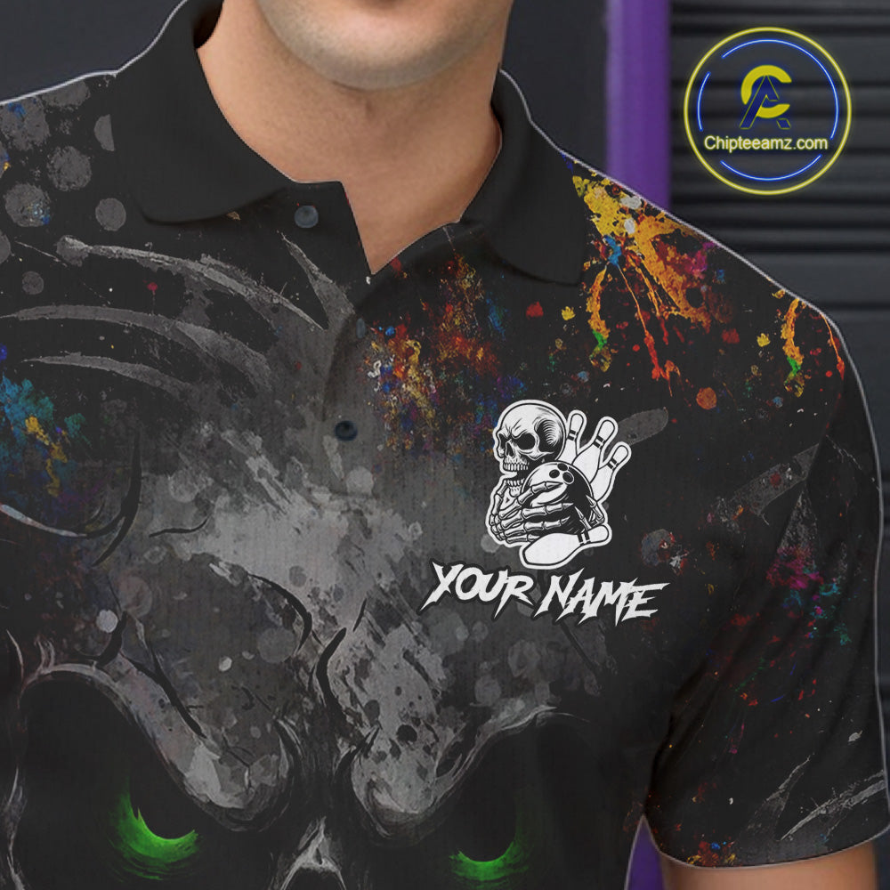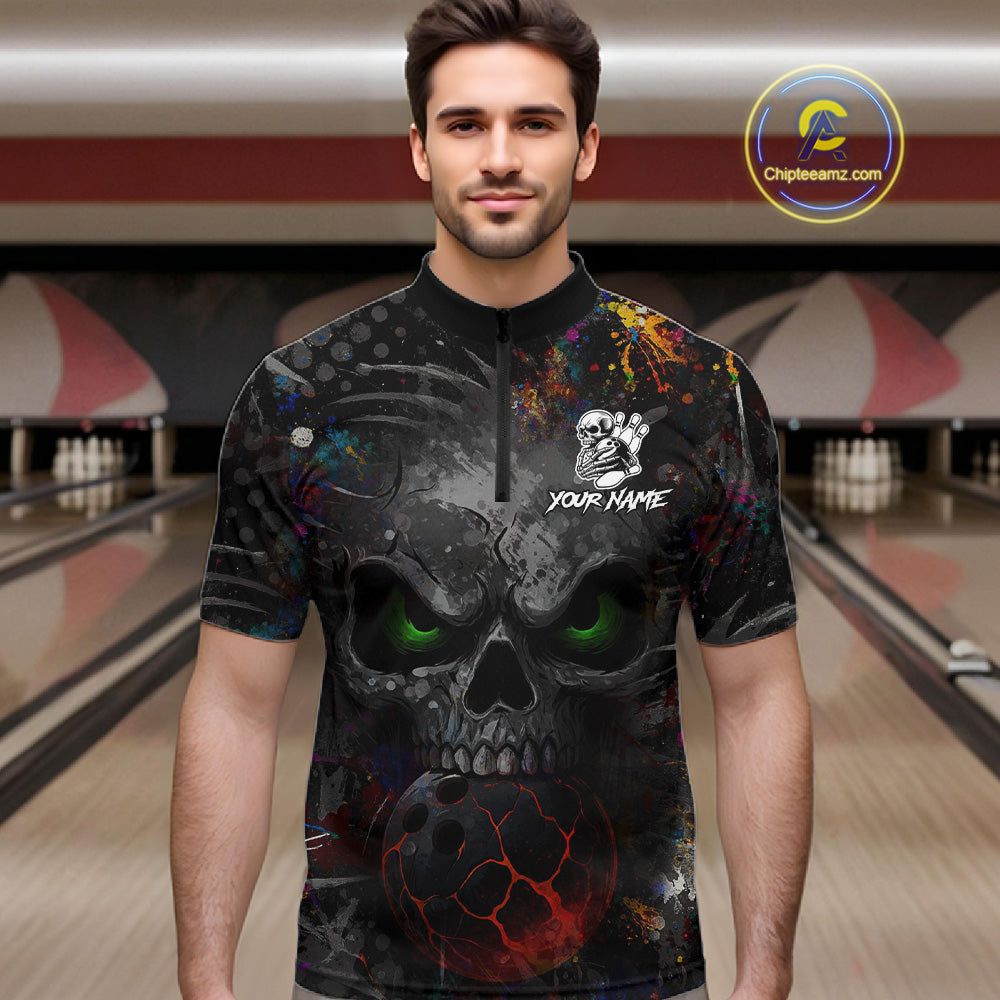 Colorful Skull bowling jerseys Bowling Shirts for Men Custom Bowling Team shirts for bowlers NQS11293