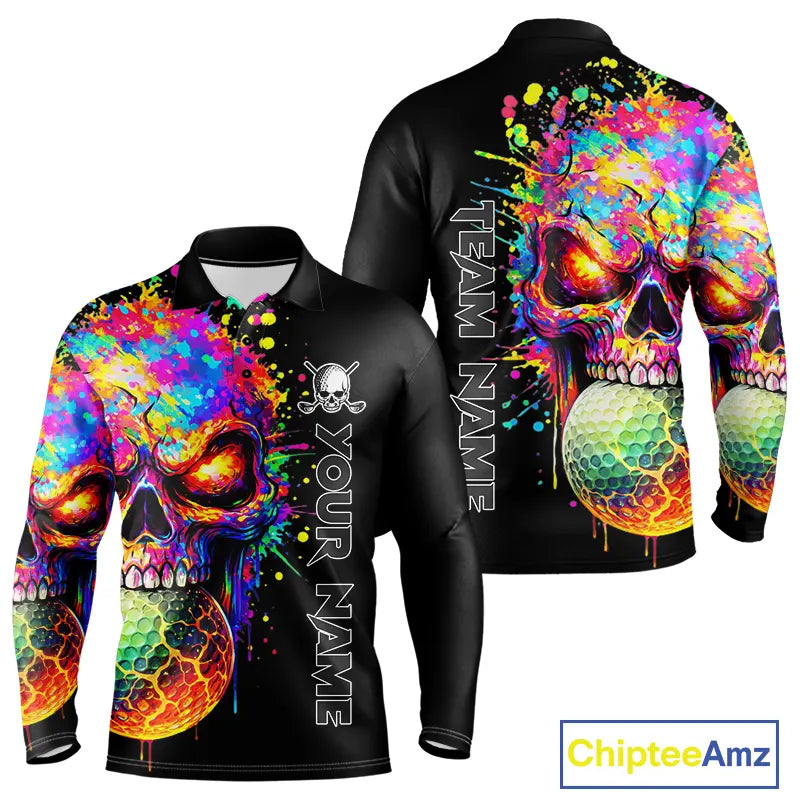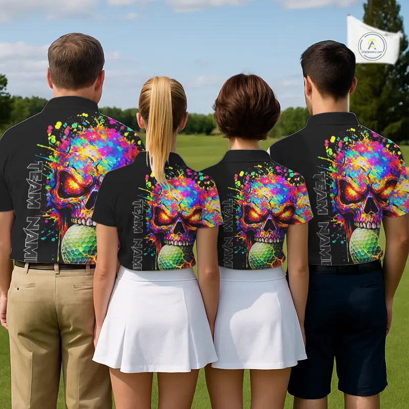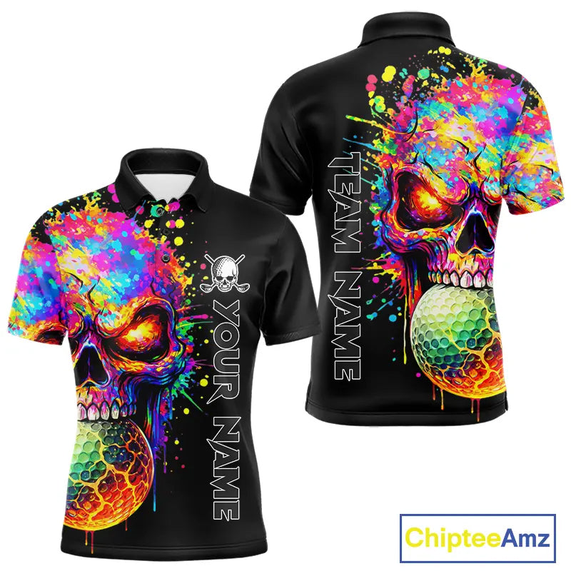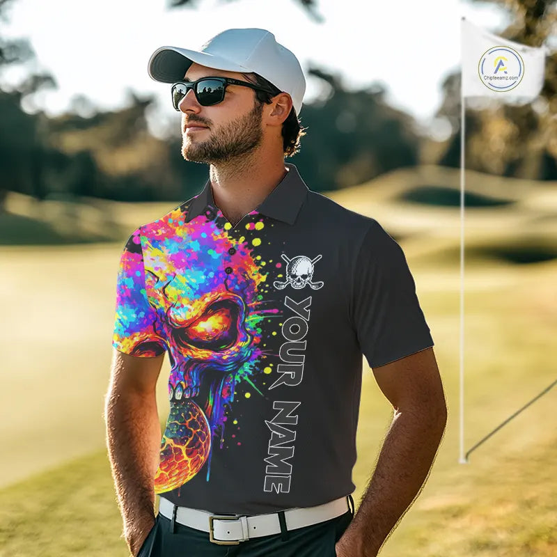 Colorful Skull Golf jerseys Black Golf polo shirts For Men Custom Team mens golf clothes NQS11318