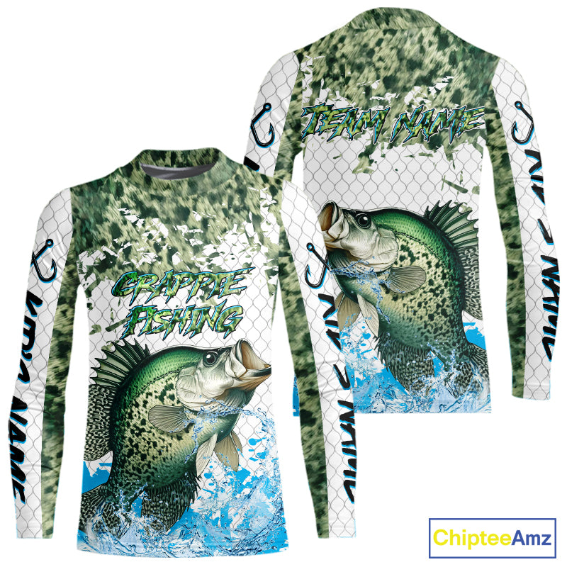 Crappie fishing green scales UV protection custom hooded sun shirt, Crappie fishing jerseys NQS10228
