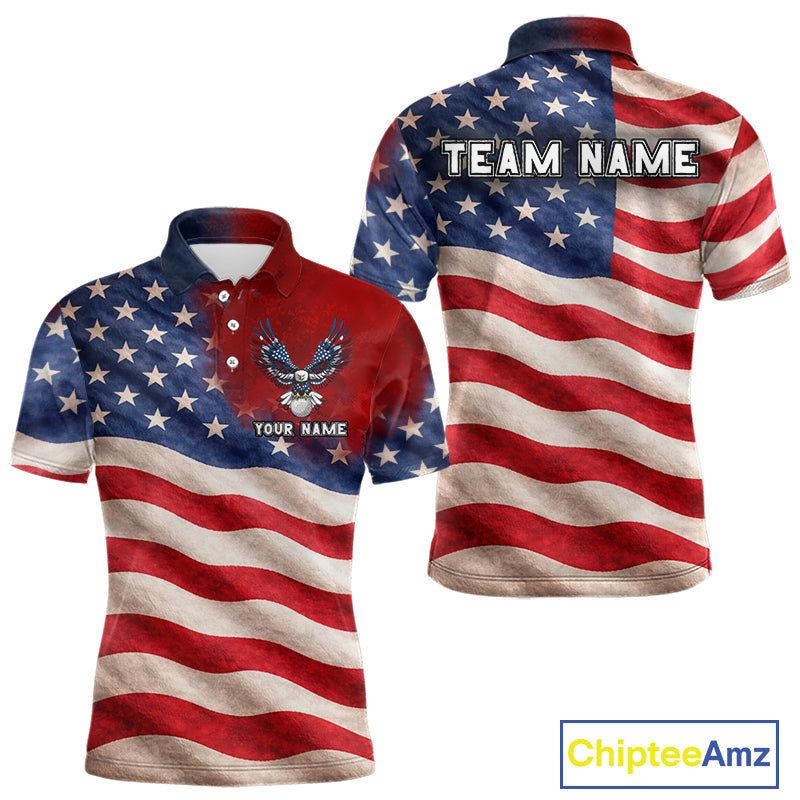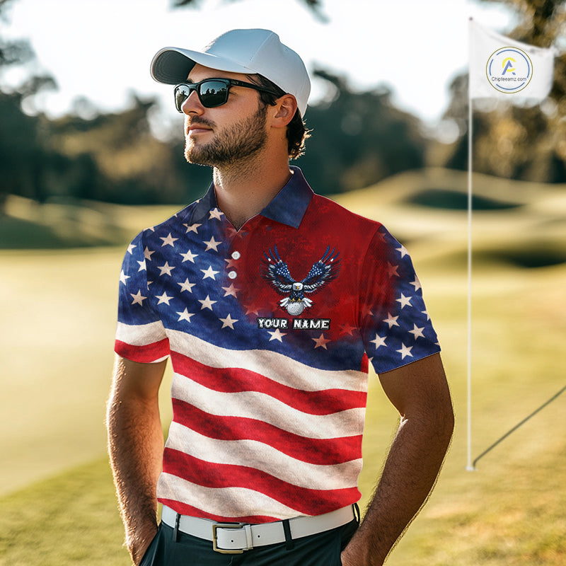 Custom American Flag Eagle Golf Polo Shirts For Men, patriotic Golf attire for men NQS11712