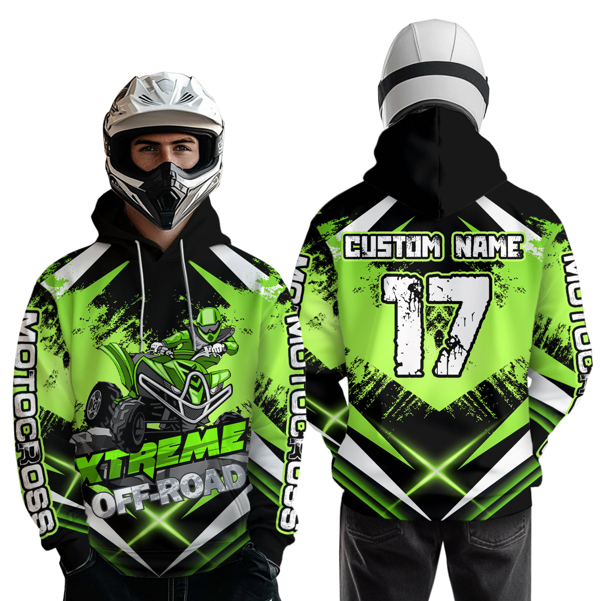 Custom ATV Motocross Hoodie for Men Women Quad Shirt Green ATV Riding Hoodie MHATV18