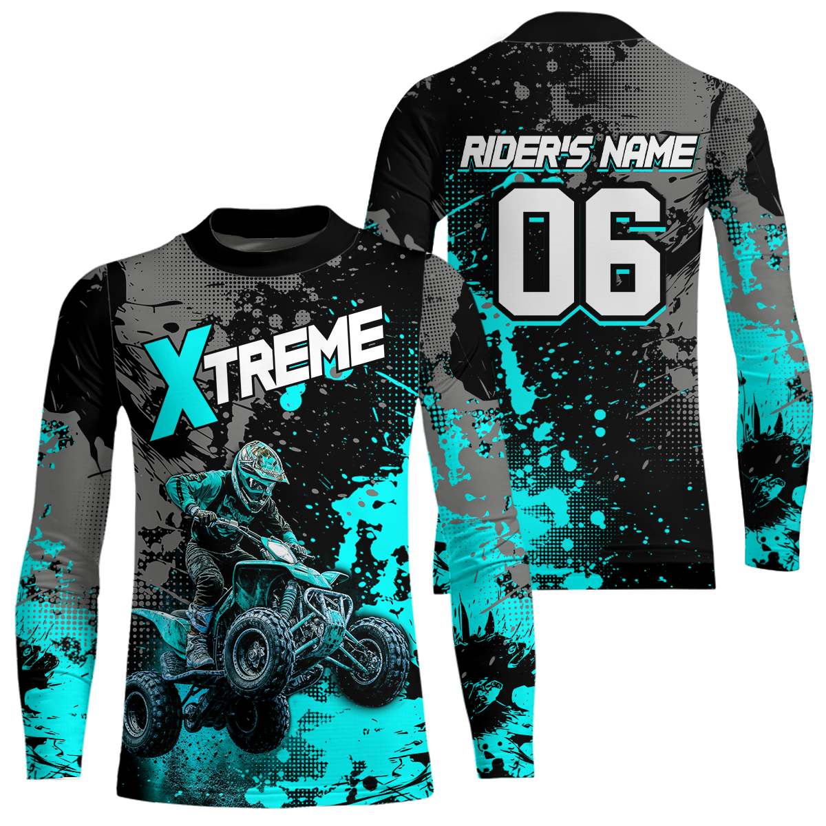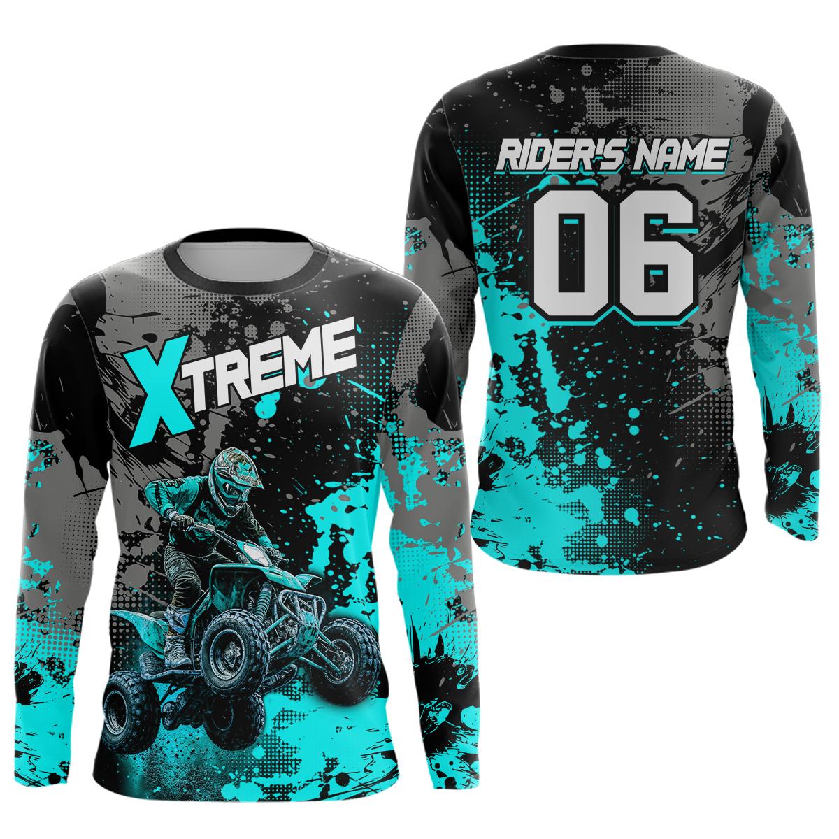 Custom Atv Motocross Shirt Turquoise UPF30+ Extreme Quad Bike Off-Road Jersey Men Kid Mx Riding Shirts NHN010