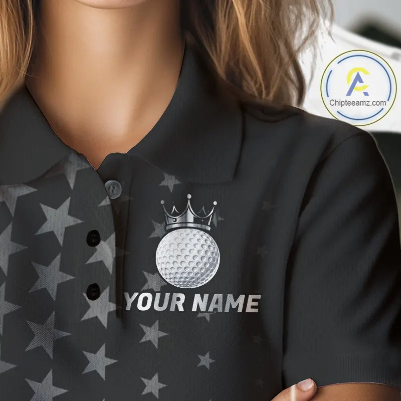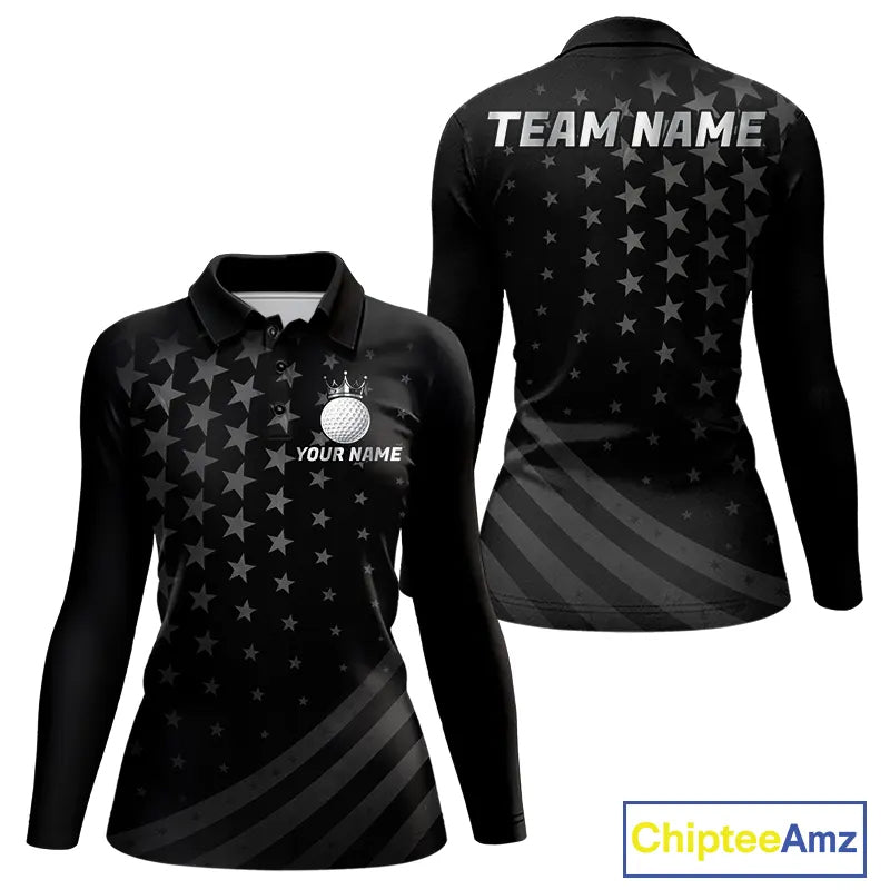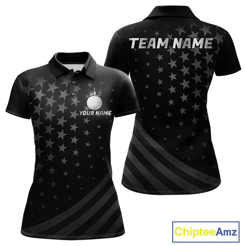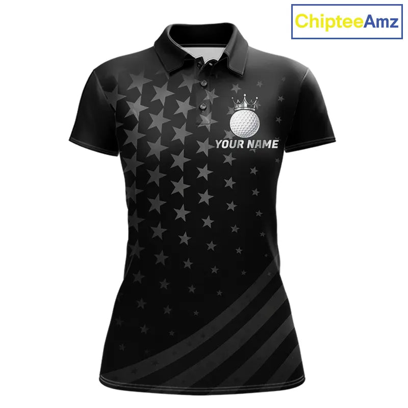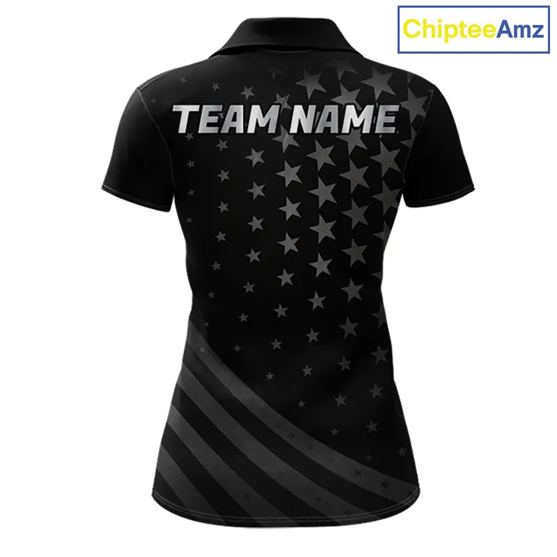 Custom Black American Flag Golf Team Shirts For Women, Personalized patriotic Ladies Golf top NQS11707