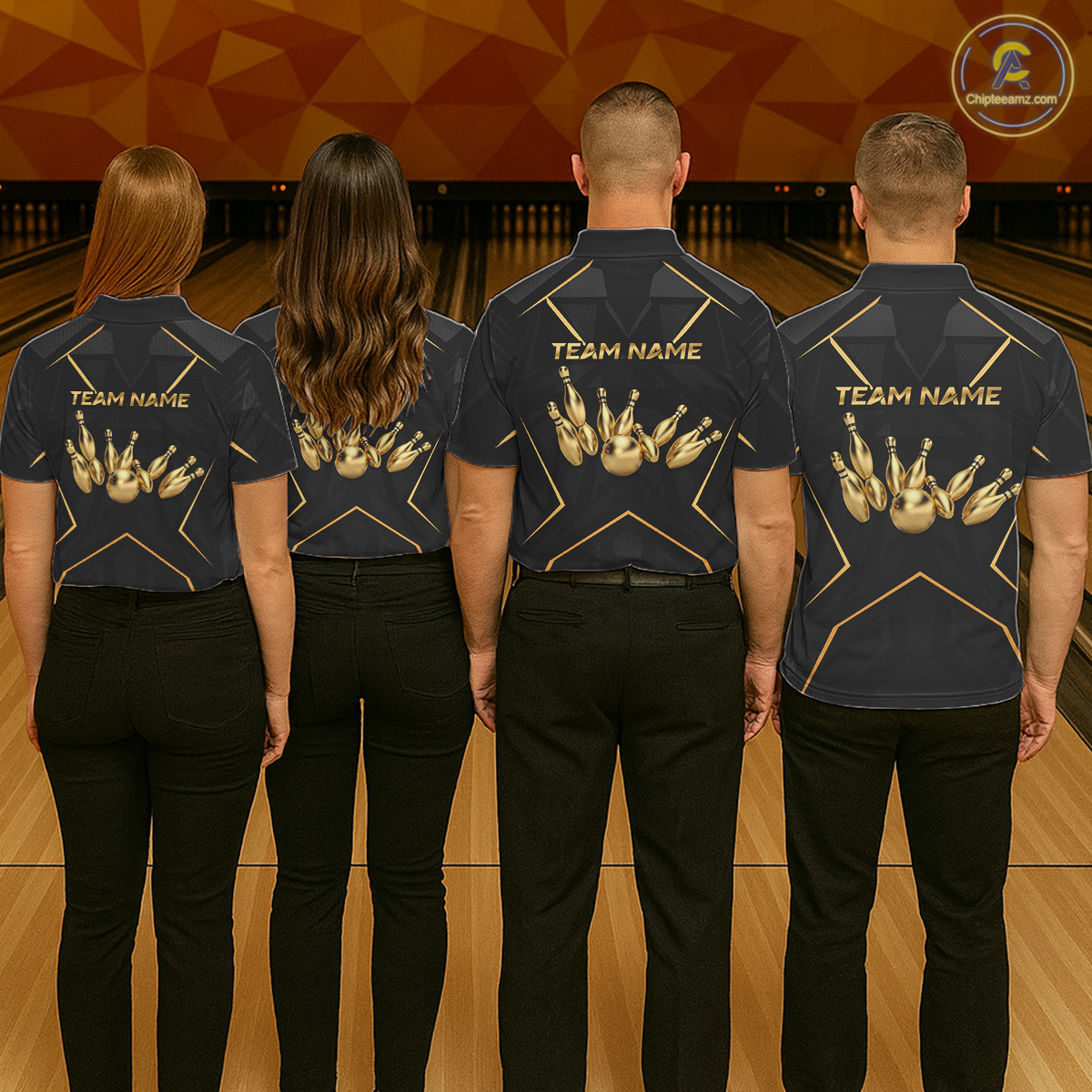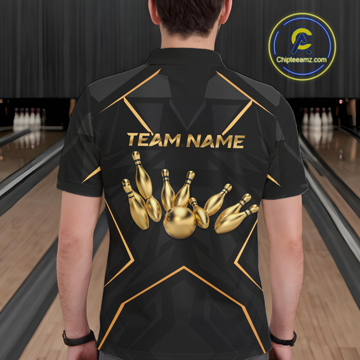 Custom Black and Gold Bowling Jersey for Men Bowling Team Shirts Bowling League Polo & 1/4 Zip HNT175