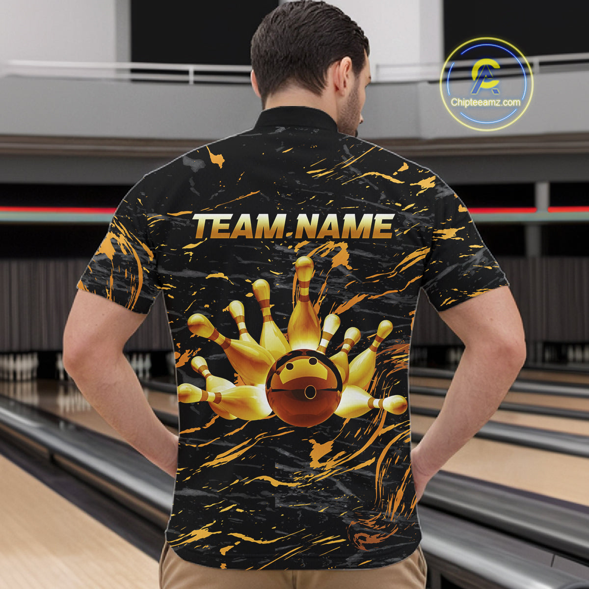 Custom Black and Gold Bowling Tournament Jersey for Men Bowling Team Shirts HNT179